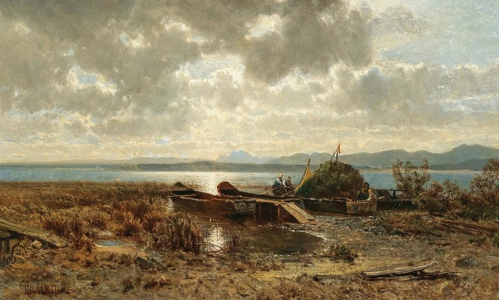 Robert Russ, ein Maler, der Ende des 19. Jahrhunderts aktiv war, wird oft mit der deutschen impressionistischen Bewegung in Verbindung gebracht. Beeinflusst von den Landschaften seines Heimatlandes, konnte er die Schönheit natürlicher Szenen mit einer einzigartigen Sensibilität einfangen. Soir au Chiemsee zeigt sein Talent, Licht und Atmosphäre darzustellen, wesentliche Elemente seines Werks. In einer Zeit, in der sich die Kunst von den akademischen Konventionen löst, hebt sich Russ durch seine Fähigkeit hervor, Emotionen durch die Natur zu vermitteln, und wird so zu einer bedeutenden Figur des Impressionismus in Deutschland.