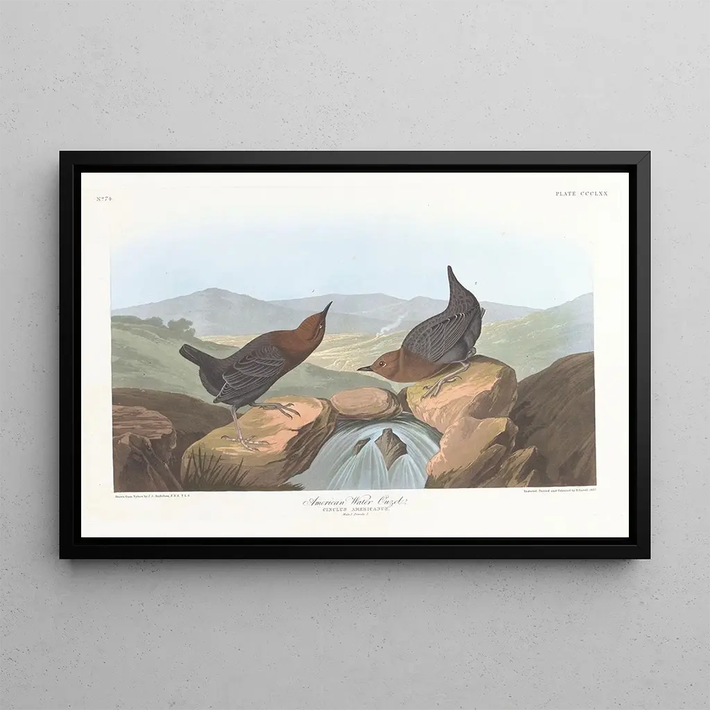 Die kunstdruck Cincle d'Amérique von John James Audubon fängt die Essenz der aquatischen Tierwelt mit beeindruckender Präzision ein. Dieses Gemälde zeigt einen Cincle, einen Vogel mit zarten Farbtönen, der an einem Flusslauf anmutig entlanggleitet. Die leuchtenden Farben und die detaillierten Federn stehen im Kontrast zu den beruhigenden Nuancen des Wassers und der umliegenden Felsen. Audubon, Meister der Beobachtung, gelingt es, eine Atmosphäre von Gelassenheit und Vitalität zu vermitteln, die den Betrachter einlädt, in dieses reiche und lebendige Ökosystem einzutauchen.