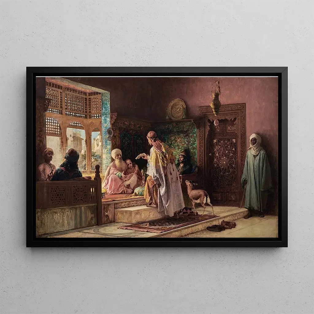 Le Messager : eine Ode an die zeitlose Schönheit In "Le Messager" entführt uns Frederick Arthur Bridgman in eine Welt, in der Licht und Farbe sich zart miteinander verweben. Dieses Werk, reich an Details, zeigt einen jungen Mann in traditioneller Kleidung, der eine wichtige Botschaft zu tragen scheint. Die warmen Töne des Hintergrunds stehen im Kontrast zu den kühleren Nuancen seiner Kleidung und schaffen eine Atmosphäre, die sowohl ruhig als auch emotional aufgeladen ist. Die Technik des Künstlers, die Ölmalerei mit Lichtakzenten verbindet, erweckt diese Szene zum Leben und lädt den Betrachter ein, über den Inhalt dieser geheimnisvollen Botschaft nachzudenken. Das Ganze evoziert eine zeitlose Schönheit, bei der jedes Element seine Bedeutung zu haben scheint. Frederick Arthur Bridgman : ein Meister des orientalischen Realismus Frederick Arthur Bridgman, aktiv im späten 19. Jahrhundert, ist bekannt für seine Werke, die von seinen Reisen im Orient inspiriert sind. Beeinflusst von den Strömungen des Realismus und des Romantizismus, hat er die Essenz der Kulturen eingefangen, denen er begegnete. Seine Gemälde, oft von Licht und Wärme durchdrungen, zeugen von seiner Bewunderung für die Schönheit der Landschaften und exotischer Figuren. Bridgman hat sich in der Kunstwelt durch seinen einzigartigen Stil etabliert, der eine raffinierte Technik mit tiefer Sensibilität verbindet. "Le Messager" passt perfekt in diese Linie und zeigt sein Talent, Szenen voller Bedeutung und Emotion darzustellen. Eine dekorative Anschaffung mit vielfältigen Vorzügen Die Wahl einer kunstdruck-Reproduktion von "Le Messager" in Ihrem Zuhause ist eine Entscheidung für eine Leinwand, die jeden Raum verschönern kann, sei es ein Wohnzimmer, ein Büro oder ein Schlafzimmer. Die Druckqualität garantiert eine Treue zu den Farben und Details des Originalwerks, sodass Sie seine ästhetische Anziehungskraft im Alltag genießen können. Dieses Bild, mit seiner warmen Atmosphäre und seiner geheimnisvollen Botschaft, wird zum echten Blickfang in Ihrer Dekoration. Durch das Hinzufügen dieser Reproduktion zu Ihrer Sammlung bringen Sie eine Note von Eleganz und Kultur in Ihre Umgebung und wecken gleichzeitig die Neugier und Bewunderung Ihrer Gäste.