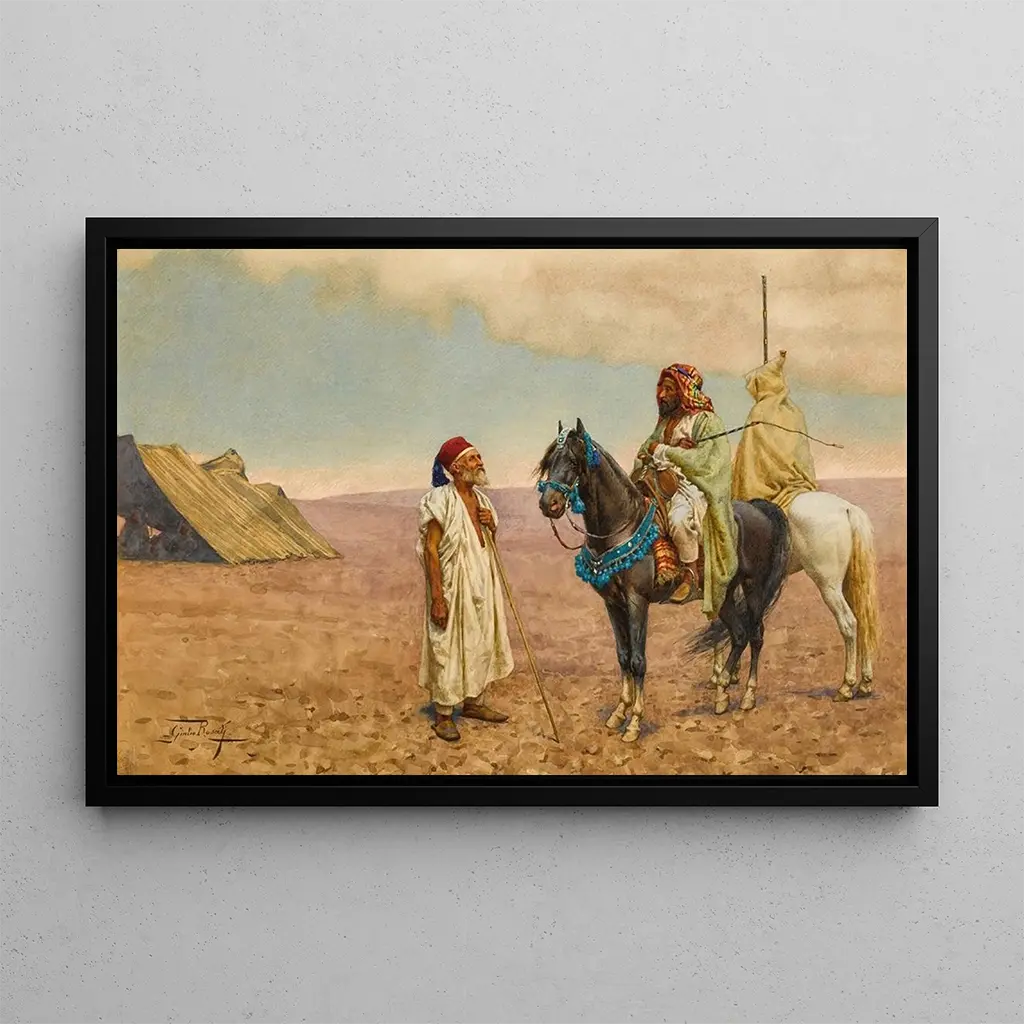 Giulio Rosati, italienischer Maler des 19. Jahrhunderts, ist bekannt für seine Werke, die das Wesen orientalischer Kulturen einfangen. Beeinflusst von seinen Reisen nach Nordafrika und in den Nahen Osten, verstand er es, die Schönheit und Komplexität dieser Regionen durch seine Kunst zu übersetzen. Hauptsächlich zwischen 1870 und 1900 aktiv, gehört Rosati zu der orientalistischen Bewegung, die viele Künstler seiner Zeit fasziniert hat. Sein Stil, geprägt von Liebe zum Detail und einer reichen Farbpalette, zeugt von einer Epoche, in der der Orient als Ort des Geheimnisses und der Exotik wahrgenommen wurde und einen Blick in ferne Welten bot.