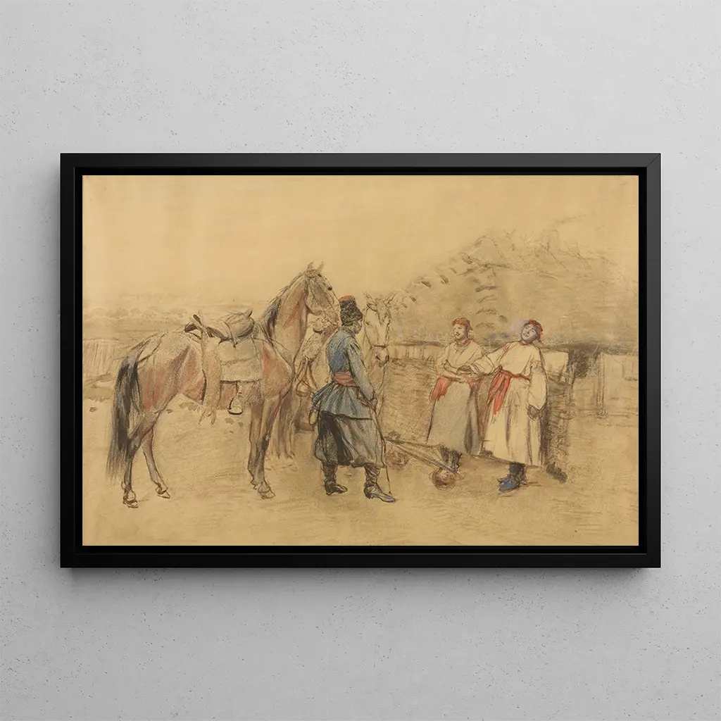 Die reproduktion von Józef Chełmoński ist ein Werk, das uns in die Lebendigkeit einer Szene des bäuerlichen Lebens eintauchen lässt. Mit warmen Farben und Lichtakzenten gelingt es dem Künstler, die Essenz des ländlichen Alltags einzufangen. Die Figuren, gekleidet in traditionelle Trachten, sind in einer Atmosphäre von Geselligkeit und Einfachheit beschäftigt. Die Technik von Chełmoński, die Realismus und Impressionismus verbindet, verleiht diesem Gemälde Tiefe und Textur, die zur Kontemplation einladen. Jedes Detail, von lächelnden Gesichtern bis zu den sich bewegenden Tieren, erzählt eine Geschichte und macht diese kunstdruck besonders lebendig.