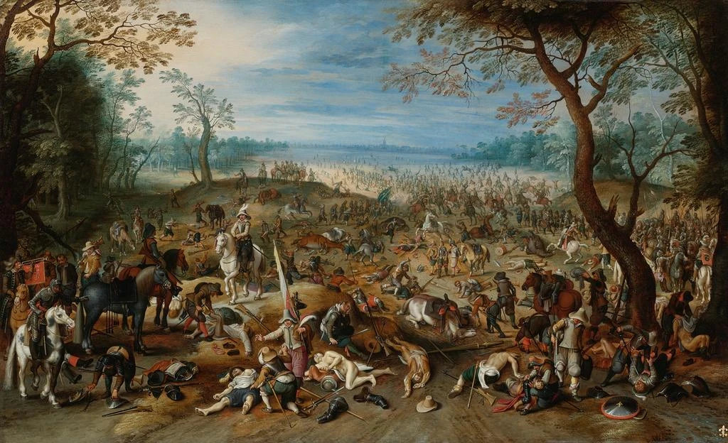 Sebastian Vrancx, flämischer Maler des 17. Jahrhunderts, ist bekannt für seine Darstellungen von Schlachten und Landschaften. In einem historischen Kontext, geprägt von Konflikten, gelang es ihm, die Brutalität und Komplexität der militärischen Ereignisse seiner Zeit einzufangen. Beeinflusst von der flämischen Schule, entwickelte Vrancx einen Stil, der sich durch dynamische Kompositionen und eine sorgfältige Detailarbeit auszeichnet. Die Konsequenzen einer Schlacht zeugen von seinem Talent, den Krieg nicht nur als historisches Ereignis, sondern auch als tiefgehende und emotionale menschliche Erfahrung darzustellen.