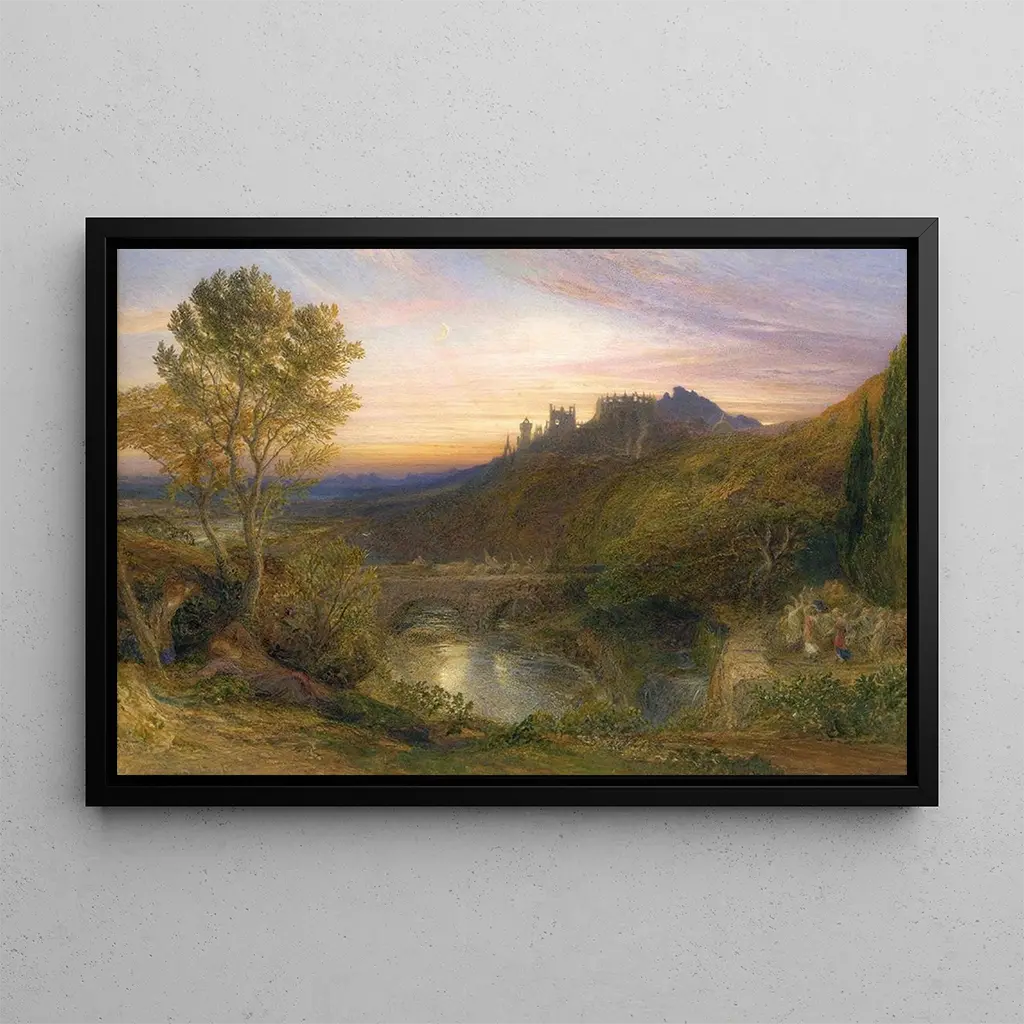 La ville aux tours : ein Hymne an die Schönheit urbaner Landschaften Die Stadt mit Türmen von Samuel Palmer evoziert eine Welt, in der Natur und Architektur harmonisch aufeinandertreffen. Die warmen Töne der Morgendämmerung verschmelzen mit zarten Schatten und schaffen eine fast traumhafte Atmosphäre. Palmer, ein Meister des Romantizismus, verwendet fließende Pinselstriche, um diese Szene zum Leben zu erwecken, in der die Türme majestätisch gen Himmel ragen. Die Komposition, zugleich dynamisch und ruhig, lädt den Betrachter ein, in eine Welt einzutauchen, in der die Zeit stillzustehen scheint, und bietet eine sanfte, beruhigende Betrachtung. Samuel Palmer: ein Pionier des englischen Romantizismus Samuel Palmer, aktiv im 19. Jahrhundert, gilt oft als einer der Vorreiter des Romantizismus in England. Beeinflusst von Künstlern wie William Blake und John Constable, entwickelt er einen einzigartigen Stil, der die Schönheit der britischen Landschaften feiert. Palmer zeichnet sich durch seinen poetischen Ansatz in der Malerei aus, bei dem er versucht, die spirituelle Essenz der Natur einzufangen. Sein Werk, obwohl weniger bekannt als das seiner Zeitgenossen, hatte einen bedeutenden Einfluss auf die nachfolgenden Generationen von Künstlern, insbesondere in der Art, wie sie Licht und Farbe interpretieren. Eine dekorative kunstdruck mit vielfältigen Vorzügen Der kunstdruck von La ville aux tours ist ein ideales Dekorationsstück, um Ihr Interieur zu bereichern, sei es im Wohnzimmer, Büro oder Schlafzimmer. Seine Druckqualität garantiert eine bemerkenswerte Farbtreue und Detailgenauigkeit des Originalwerks, sodass Sie die beruhigende Atmosphäre, die es ausstrahlt, voll genießen können. Dieses Bild, mit seinem zeitlosen Charme, zieht den Blick auf sich und regt Gespräche an, wodurch Ihr Raum zu einem Ort der Inspiration und Gelassenheit wird.
