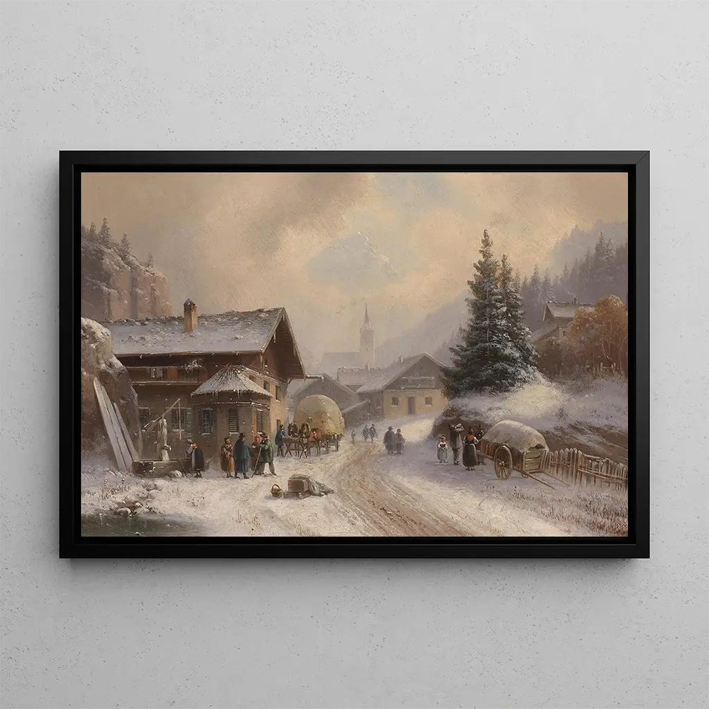"Rue de village en hiver" von Anton Doll vermittelt eine ruhige und kontemplative Atmosphäre, in der Schnee die Dächer und Pflaster sanft bedeckt. Die kalten Farbtöne des Winters verbinden sich mit Lichtakzenten und schaffen einen beeindruckenden Kontrast, der den Blick anzieht. Die sorgfältig ausbalancierte Komposition lädt den Betrachter ein, in diese ruhige Szene einzutauchen, in der die Zeit stillzustehen scheint. Die detaillierten Darstellungen der Häuser und Bäume sowie die dezente Präsenz der Dorfbewohner verstärken den Eindruck eines einfachen, authentischen Lebens, typisch für die ländlichen Landschaften jener Zeit.