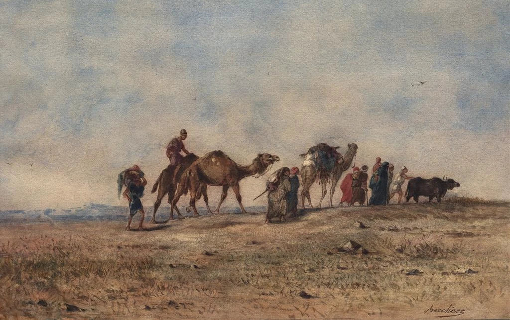Une karawane in der Wüste : eine Reise ins Herz der Dünen In "Une karawane in der Wüste" entführt uns Narcisse Berchère in eine karge und geheimnisvolle Landschaft. Das Leinwandbild, getaucht in warme Farbtöne, erinnert an die Hitze der untergehenden Sonne, die den Himmel in Orangetönen und Gold schimmern lässt. Die Silhouetten der Kamele und Reisenden heben sich anmutig am Horizont ab und schaffen eine Atmosphäre der Ruhe und Kontemplation. Berchères Technik, die Realismus und Romantik verbindet, erweckt dieses Gemälde zum Leben, wobei jedes Detail – von den Falten der Kleidung bis zu den Sandkörnern – vor Energie zu vibrieren scheint. Narcisse Berchère: ein Meister der orientalistisch inspirierten Landschaftsmalerei Narcisse Berchère, französischer Maler des 19. Jahrhunderts, ist bekannt für seine orientalischen Werke, die die Essenz exotischer Landschaften einfangen. Beeinflusst von der orientalistischen Bewegung, verstand er es, die Schönheit ferner Kulturen feinfühlig zu übersetzen. Berchère reiste durch Nordafrika und den Nahen Osten und nahm die Lichter und Atmosphären auf, die seine Gemälde prägen. Seine Arbeit spiegelt eine Epoche wider, in der der Orient den Westen fasziniert, und er hat sich als eine ikonische Figur dieses künstlerischen Stroms etabliert, der Sensibilität und Präzision vereint. Eine dekorative kunstdruck mit vielfältigen Vorzügen Der kunstdruck von "Une karawane in der Wüste" ist ein dekoratives Stück, das Ihr Zuhause verschönern wird, sei es im Wohnzimmer, Büro oder Schlafzimmer. Seine Druckqualität und Treue zum Originalwerk garantieren eine beeindruckende ästhetische Wirkung. Dieses Bild lädt zur Flucht und Träumerei ein und bringt eine exotische Note in Ihre Dekoration. Mit seinen warmen Farben und seiner beruhigenden Atmosphäre wird diese Leinwand zu einem wahren Blickfang, der die Bewunderung Ihrer Gäste weckt und Ihren Wohnraum bereichert.