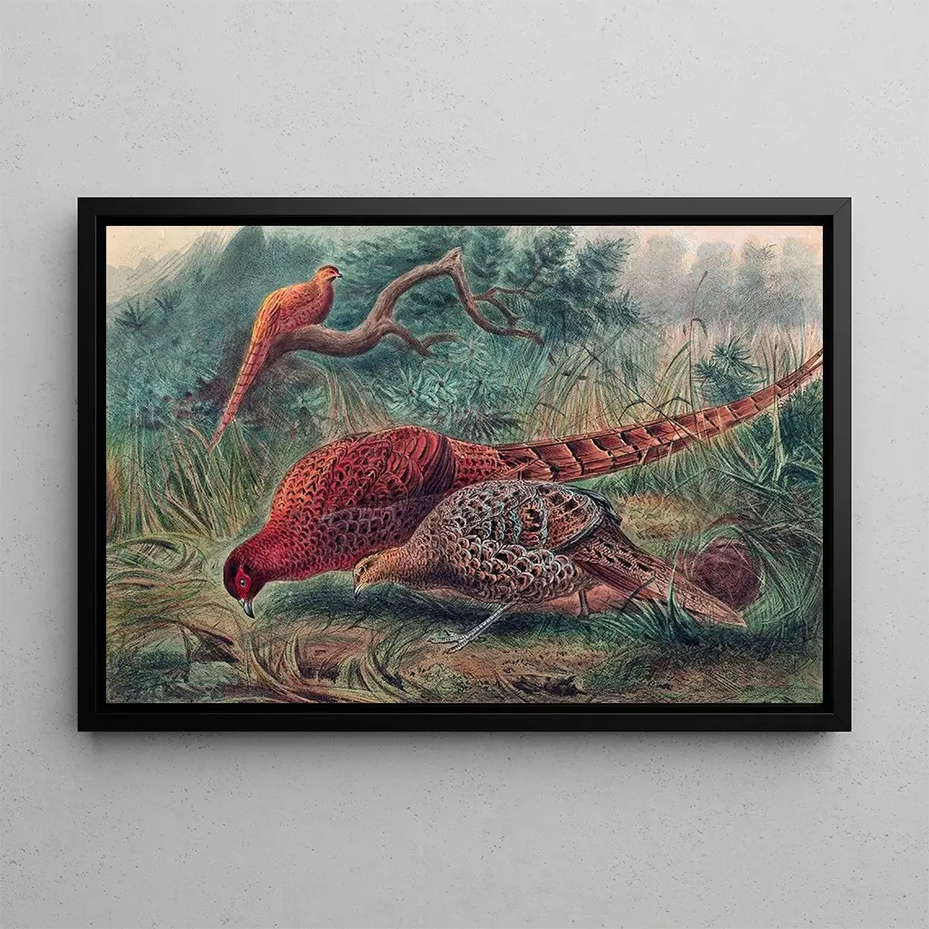 Das "Faisan de Soemmerring" von Joseph Wolf ist ein lebendiges Kunstwerk, das die Pracht der Tierwelt einfängt. Die Komposition hebt einen majestätischen Fasan hervor, dessen schillernde Federn im Licht funkeln und eine Palette reicher Farben von Gold bis Smaragdgrün offenbaren. Die mit Wasserfarben meisterhaft ausgeführte Technik verleiht dem Gesamtwerk Leichtigkeit, während der verschwommene Hintergrund eine natürliche, fast traumhafte Umgebung evoziert. Die Atmosphäre, die diese kunstdruck ausstrahlt, lädt zu einer ruhigen Betrachtung ein, bei der der Betrachter fast das Zwitschern der Vögel hören und die leichte Brise spüren kann.