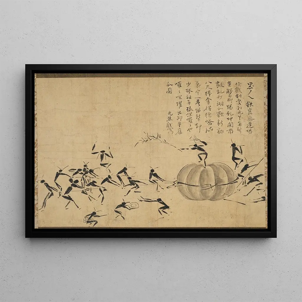 Das Gemälde "Festival des insectes" von Matsurin Jōtō lädt zu einer Eintauchen in eine lebendige und bunte Welt ein. Die detaillierten Insekten, wunderschön wiedergegeben, fangen die Essenz der Natur mit faszinierender Präzision ein. Die leuchtenden Farben, die von üppigem Grün bis zu strahlendem Gelb reichen, schaffen eine fröhliche und dynamische Atmosphäre. Die Technik des Künstlers, die Feinheit und Glanz vereint, ermöglicht es, die Bewegung und das Leben jeder Kreatur zu spüren. Dieses Gemälde, eine wahre Ode an die Biodiversität, versetzt den Betrachter in ein Universum, in dem jedes Insekt eine wesentliche Rolle im Ökosystem spielt.