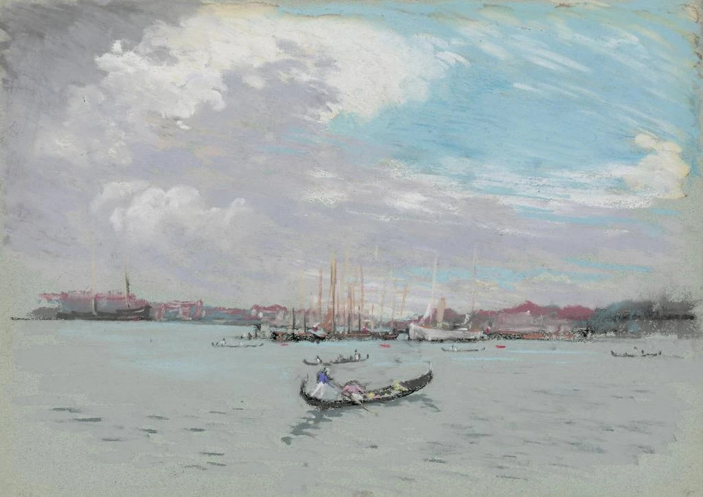 „Außerhalb von Venedig“ von Joseph Pennell fängt die Magie der Kanäle der berühmten italienischen Stadt ein und bietet eine einzigartige Perspektive auf ihre ikonische Architektur. Das Leinwandbild besticht durch seine lebendigen Farben und fließenden Linien, die die Bewegung der Gondeln auf dem Wasser widerspiegeln. Pennell, mit seinem charakteristischen Stil, nutzt Gravur- und Maltechniken, um eine Atmosphäre zu schaffen, die sowohl dynamisch als auch nostalgisch ist. Das Werk lädt den Betrachter ein, in das Wesen Venedigs einzutauchen, wo jeder Pinselstrich eine Geschichte von Reise und Entdeckung erzählt.