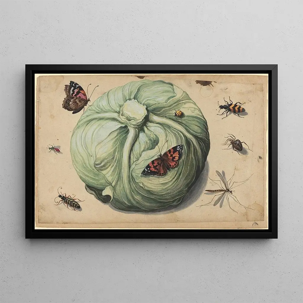 Der 'Tête de chou avec insectes' ist ein anonymes Kunstwerk, das die Essenz der Natur in ihrer ganzen Vielfalt einfängt. Dieses Gemälde, reich an Details, zeigt eine Kopfkohl mit Insekten, wodurch ein beeindruckender Kontrast zwischen organischer Schönheit und der Zerbrechlichkeit des Lebens entsteht. Die leuchtenden Farben und die zarten Texturen der Kohlblätter, verbunden mit der Präsenz der Insekten, erzeugen eine Atmosphäre, die sowohl faszinierend als auch verstörend ist. Der Künstler gelingt es durch seine technische Fertigkeit, dieser Komposition Leben einzuhauchen und den Betrachter einzuladen, die Wunder der Natur genauer zu betrachten.