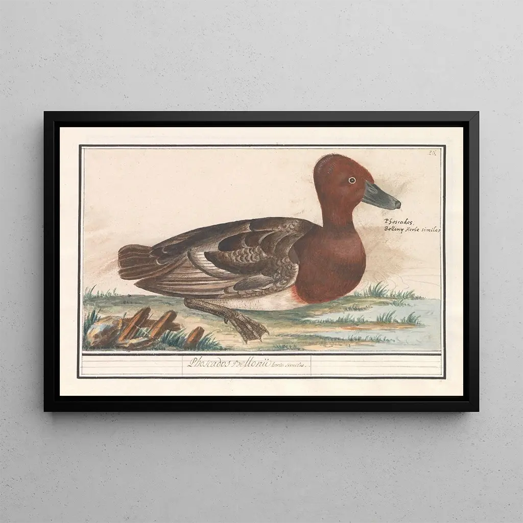 Die kunstdruck des Gemäldes "Canard siffleur (Anas penelope)" von Anselmus Botius de Boodt ist eine Ode an die Schönheit der Natur. Dieses Werk, das im 17. Jahrhundert geschaffen wurde, hebt einen Canard siffleur hervor, dessen detaillierte Feinheiten und zarte Farben die Essenz dieses Wassergeflügels einfangen. Die Farbpalette, dominiert von Nuancen in Grün, Blau und Braun, erinnert an die natürlichen Lebensräume, in denen diese Art lebt. Die Technik des Künstlers, die Realismus und Feinheit verbindet, ermöglicht es, die Leichtigkeit des Gefieders und die Anmut des Entenvogels in seinem Lebensraum zu spüren. Dieses Gemälde lädt zur Betrachtung von Fauna und Flora ein und feiert gleichzeitig die Ruhe der Wasserlandschaften.
