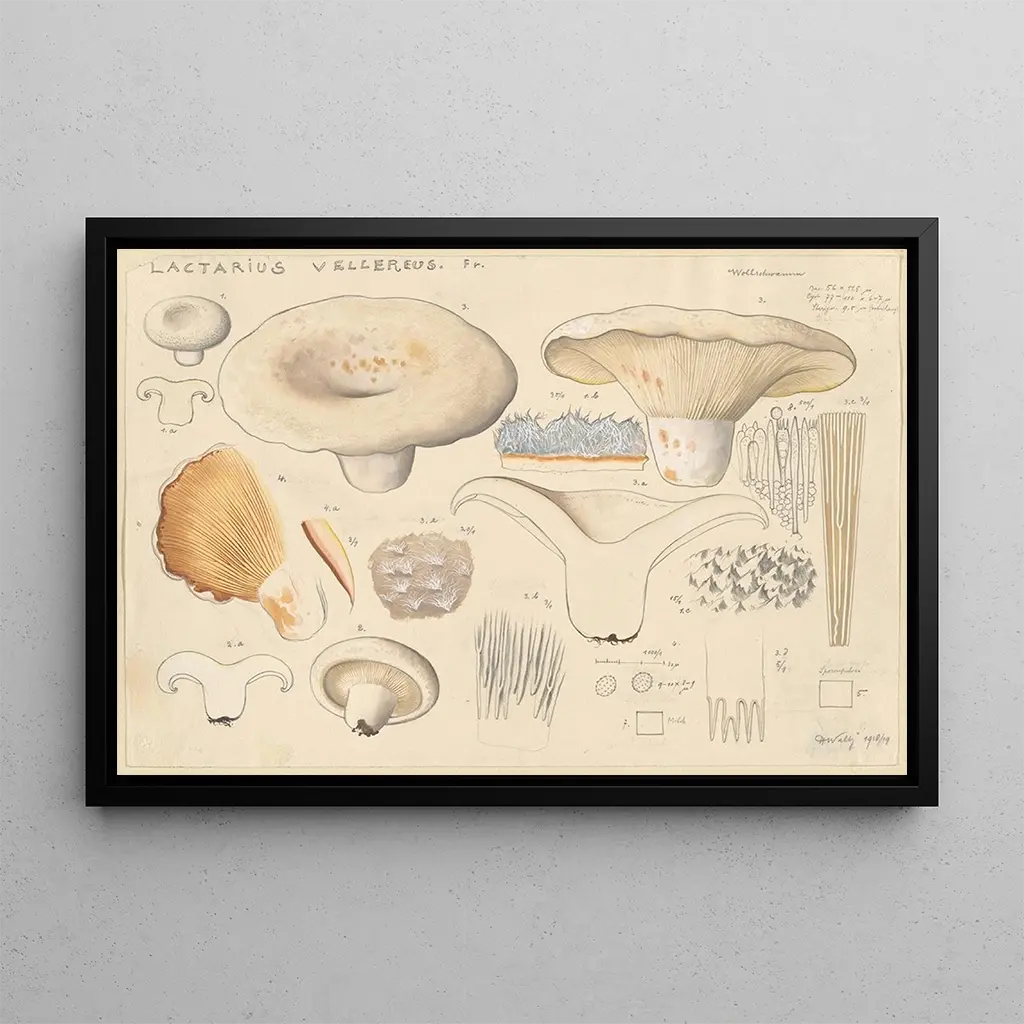 Der kunstdruck von "Lactaire velouté" ist ein ideales Dekorationsstück, um Ihr Zuhause zu bereichern. Ob im Wohnzimmer, im Büro oder im Schlafzimmer – dieses Kunstwerk verleiht jedem Raum eine Note von Eleganz und Geheimnis. Die Druckqualität garantiert eine bemerkenswerte Treue zu den Details des Originalwerks und bietet gleichzeitig eine unbestreitbare ästhetische Anziehungskraft. Mit dieser Leinwand laden Sie nicht nur die Schönheit der Natur in Ihren Raum ein, sondern auch ein Stück künstlerischer Geschichte, das Ihre Gäste fesseln und zur Kontemplation anregen wird.