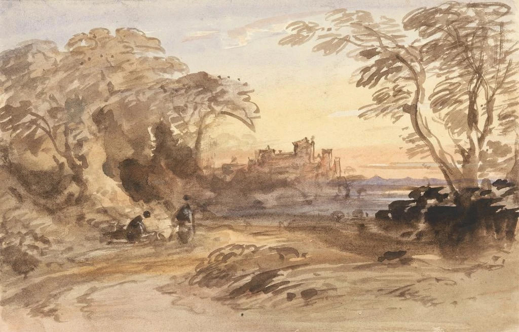 Landschaft mit Figuren und entferntem Schloss - John Varley