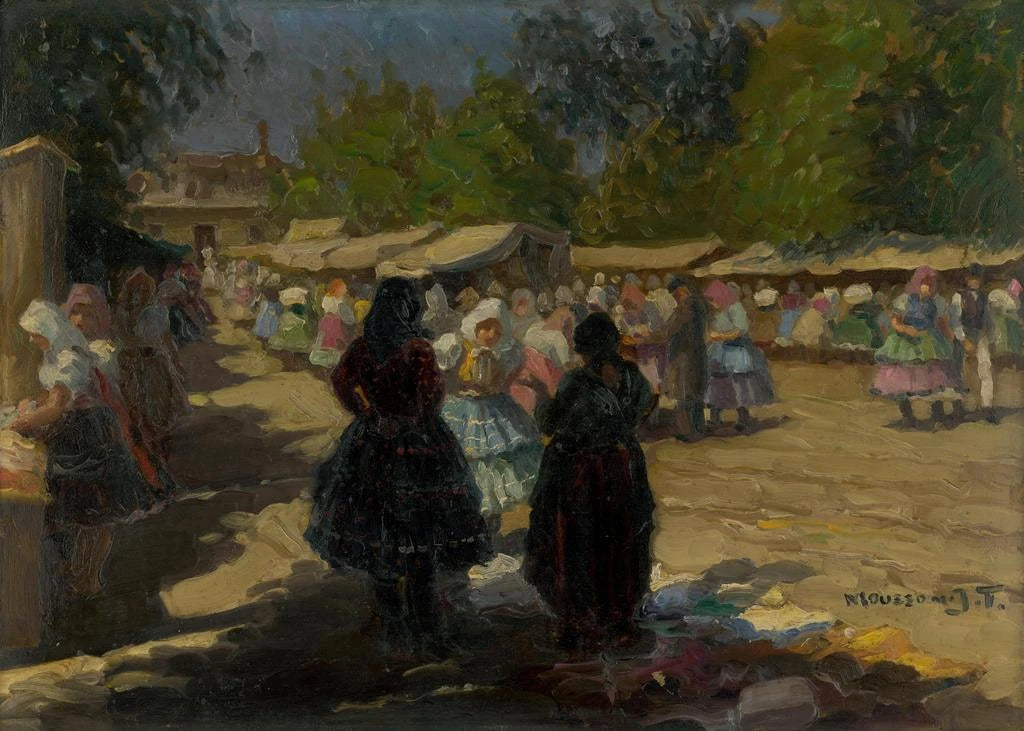 Markt in Michalovce II: eine lebendige Szene des Alltagslebens In dieser kunstdruckversion des Markts in Michalovce II taucht uns Jozef Teodor Mousson in das Herz einer farbenfrohen und lebendigen Atmosphäre ein. Die Figuren, gekleidet in traditionelle Trachten, beleben die Stände, die mit regionalen Produkten gefüllt sind. Die warmen, erdigen Farbtöne, kombiniert mit Akzenten in leuchtenden Farben, schaffen eine einladende und festliche Stimmung. Die Ölmaltechnik ermöglicht es, die Details mit beeindruckender Präzision wiederzugeben, während das Licht eine wesentliche Rolle spielt, indem es die Gesichter und Gegenstände mit spürbarer Sanftheit erleuchtet. Dieses Werk lädt zur Betrachtung menschlicher Interaktionen und kultureller Traditionen ein. Jozef Teodor Mousson: ein Zeuge des slowakischen Lebens im 19. Jahrhundert Jozef Teodor Mousson, geboren 1850, ist ein slowakischer kunstdruckkünstler, der die Essenz des ländlichen Lebens seiner Zeit eingefangen hat. Beeinflusst vom realistischen Bewegung, konzentriert er sich auf Szenen des Alltagslebens und hebt die Traditionen und Bräuche seines Landes hervor. Seine Karriere erstreckt sich über mehrere Jahrzehnte, in denen er an zahlreichen Ausstellungen teilnahm und zur Anerkennung der slowakischen kunst beitrug. Mousson gilt oft als Pionier der Genrekunstdruck in der Slowakei, und seine Werke, wie der Markt in Michalovce II, zeugen von seinem Engagement, die lokale Kultur mit Authentizität und Sensibilität darzustellen. Eine dekorative anschaffung mit vielfältigen vorteilen Die wahl eines kunstdrucks des Markts in Michalovce II bedeutet, eine leinwand zu wählen, die einen Hauch von Authentizität und Wärme in Ihr Zuhause bringt. Ob im Wohnzimmer, im Büro oder im Schlafzimmer, dieses werk fügt sich harmonisch in verschiedene Einrichtungsstile ein, vom traditionellen bis zum modernen. Die qualität des kunstdrucks garantiert eine treue Wiedergabe der details und farben des Originals, während es gleichzeitig eine unbestreitbare ästhetische anziehungskraft bietet. Durch das hinzufügen dieses bildes zu Ihrer sammlung dekorieren Sie nicht nur, sondern erzählen eine Geschichte – die einer reichen und lebendigen kultur.