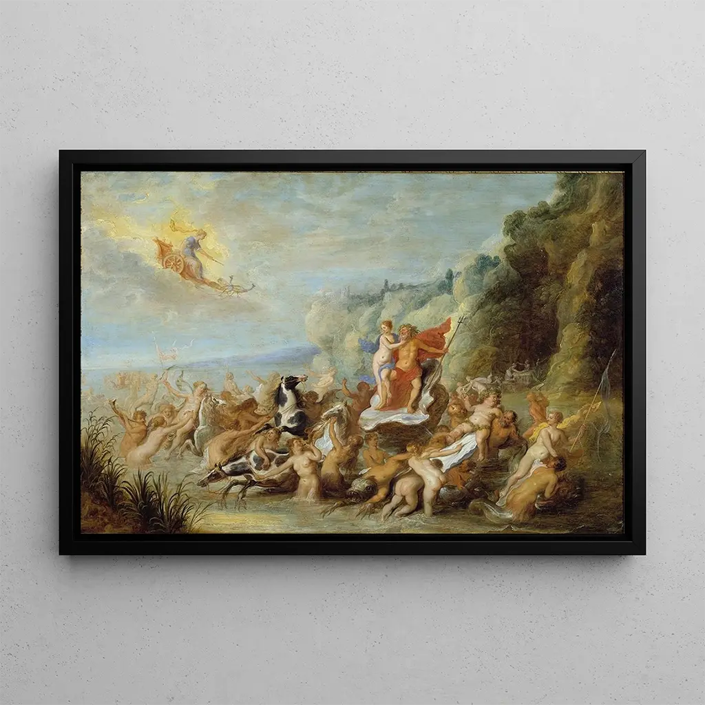 „Neptune und Amphitrite“ ist ein faszinierender kunstdruck, der die Begegnung zwischen dem Meeresgott und seiner göttlichen Gemahlin darstellt. In diesem Gemälde zeigt Abraham van Diepenbeeck eine Szene voller Bewegung und Emotionen, in der die Wellen um die Figuren zu tanzen scheinen. Die maritimen Farben, von tiefblau bis smaragdgrün, schaffen eine majestätische und zugleich ruhige Atmosphäre. Die Ölmaltechnik ermöglicht beeindruckende Details, flüssige Texturen, die das Meer nachahmen, und ein Lichtspiel, das auf den Körpern der Götter reflektiert, wodurch dieses Werk lebendig und zeitlos wirkt.