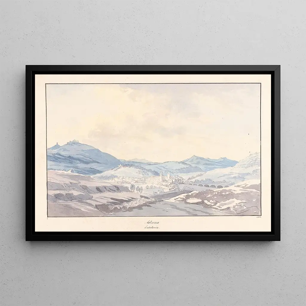 Salsona Katalonien: ein lebendiges Gemälde voller Leben und Licht Die Salsona Katalonien Kunstdruck von Charles Hamilton Smith entführt uns in das Herz einer malerischen Landschaft, in der die Natur in einer Palette leuchtender Farben erblüht. Die Grüntöne der Hügel verschmelzen mit den goldenen Nuancen des Sonnenuntergangs und schaffen eine warme, einladende Atmosphäre. Die Aquarelltechnik, meisterhaft vom Künstler beherrscht, ermöglicht es, die Flüssigkeit des Wassers und die Leichtigkeit der Wolken einzufangen. Jeder Pinselstrich scheint eine Geschichte zu erzählen und lädt den Betrachter ein, in diese idyllische Szene einzutauchen, in der die Zeit stillzustehen scheint. Charles Hamilton Smith: ein Zeuge seiner Zeit Charles Hamilton Smith, aktiv im frühen 19. Jahrhundert, ist bekannt für seine Werke, die wissenschaftliche Präzision mit künstlerischer Sensibilität verbinden. Beeinflusst von britischen Landschaften und Reisen in Europa, konnte er die Schönheit der Orte mit bemerkenswerter Feinfühligkeit festhalten. Seine Werke, oft inspiriert von der Natur, zeugen von einem wachsenden Interesse an der Beobachtung von Landschaften und Szenen des täglichen Lebens. Als Künstler und Illustrator spielte Smith eine Schlüsselrolle in der Entwicklung der Aquarellkunst als eigenständige Kunstform und prägte damit die Kunstgeschichte. Eine dekorative Anschaffung mit vielfältigen Vorzügen Der kunstdruck des Gemäldes Salsona Katalonien ist ein ideales Dekorationsstück, um Ihr Wohnzimmer, Büro oder Schlafzimmer zu verschönern. Seine hochwertige, detailgetreue Druckqualität und die lebendigen Farben bringen Frische und Ruhe in Ihr Zuhause. Mit dieser Leinwand schaffen Sie eine beruhigende Atmosphäre in Ihrem Raum und fügen gleichzeitig eine künstlerische Dimension hinzu, die Bewunderung hervorruft. Dieses Gemälde, eine wahre Einladung zur Flucht, wird Ihre Gäste begeistern und Ihre Dekoration mit Eleganz und Stil bereichern.