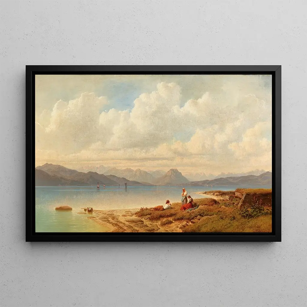 Partie am Bodensee: ein Spiegelbild von Gelassenheit und Natur Der kunstdruck von "Partie am Bodensee" zeigt eine ruhige Szene, in der das schimmernde Wasser des Sees mit der umliegenden Landschaft verschmilzt. Die sanften und beruhigenden Farben, die von tiefem Blau bis zu zarten Grüntönen reichen, schaffen eine Atmosphäre der Ruhe. Maximilian Haushofer gelingt es durch seine Maltechnik, die natürliche Schönheit dieses ikonischen Ortes zu vermitteln. Die detaillierten Segelboote und Ufer laden zu einer stillen Betrachtung ein und versetzen den Betrachter in einen Moment des Friedens am Wasser. Maximilian Haushofer: ein Künstler der romantischen Landschaft Maximilian Haushofer, deutscher Maler des 19. Jahrhunderts, ist bekannt für seine Darstellungen idyllischer Landschaften, insbesondere des Bodensees. Sein romantischer Stil, beeinflusst von Natur und Licht, ermöglichte es ihm, flüchtige Momente der Schönheit einzufangen. Haushofer hat die Atmosphäre der Orte, die er malte, aufgenommen, und seine Werke gelten oft als Zeugnisse der Harmonie zwischen Mensch und Natur. Durch die Erforschung der Landschaften seiner Zeit trug er zur Entwicklung der Landschaftsmalerei in Deutschland bei und hinterließ ein nachhaltiges Erbe. Eine dekorative Anschaffung mit vielfältigen Vorzügen Der kunstdruck von "Partie am Bodensee" ist eine dekorative Wahl, die Ihr Zuhause bereichern wird, sei es im Wohnzimmer, Büro oder Schlafzimmer. Seine Druckqualität und die Treue zu den ursprünglichen Nuancen machen ihn zu einem attraktiven Blickfang. Mit einem Hauch von Gelassenheit und Natur in Ihrem Raum schafft dieses Leinwandbild eine entspannende und inspirierende Atmosphäre. Es lässt sich mühelos in verschiedene Einrichtungsstile integrieren und bietet eine visuelle Fluchtmöglichkeit bei jedem Blick auf dieses faszinierende Kunstwerk.