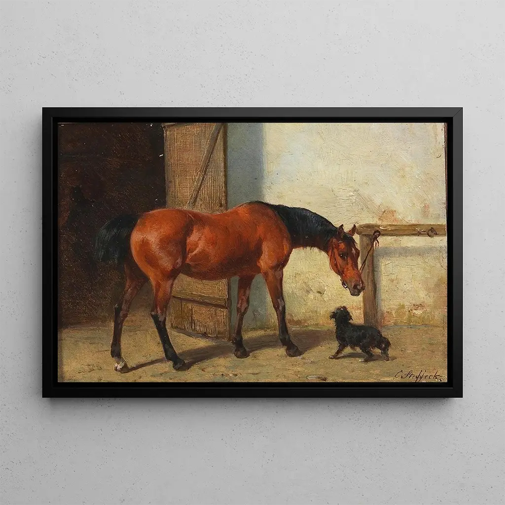 Ein guter Freund: ein Portrait der menschlichen Verbundenheit Die kunstdruck von Ein guter Freund, geschaffen von Carl Steffeck, zeigt liebevoll die Beziehung zwischen Mensch und seinem treuen vierbeinigen Begleiter. Dieses Gemälde, reich an warmen Farben und ausdrucksstarken Details, fängt einen Moment der Verbundenheit und Zärtlichkeit ein. Der aufmerksame Blick des Hundes, verbunden mit der entspannten Haltung seines Besitzers, vermittelt eine Atmosphäre des Vertrauens und der Zuneigung. Steffeck gelingt es durch seine geschickte Technik, eine spürbare Emotion zu übertragen, was dieses Werk besonders berührend macht. Jeder Pinselstrich scheint eine Geschichte zu erzählen, die eines unzertrennlichen Bandes zwischen Mensch und Tier. Carl Steffeck: ein Meister des emotionalen Realismus Carl Steffeck, deutscher Maler des 19. Jahrhunderts, ist bekannt für seine Portraits und Genreszenen, die menschliche und tierische Beziehungen in den Vordergrund stellen. In einem künstlerischen Umfeld, das vom Realismus geprägt ist, ließ er sich von Alltag und sozialen Interaktionen inspirieren, um Werke voller Emotionen zu schaffen. Steffeck verstand es, die Schönheit einfacher Momente einzufangen, was ihn bei Zeitgenossen und späteren Generationen gleichermaßen beliebt machte. Sein Stil, geprägt von einer sorgfältigen Detailarbeit und einer Palette warmer Farben, trug zu seinem Ruf in der Kunstwelt bei. Eine dekorative anschaffung mit vielfältigen vorteilen Der kunstdruck von Ein guter Freund ist ein dekoratives Stück, das sich harmonisch in verschiedene Innenräume einfügt, sei es im Wohnzimmer, Eingangsbereich oder Büro. Seine Druckqualität garantiert eine bemerkenswerte Treue zum Originalwerk, sodass jede Nuance und jeder Ausdruck geschätzt werden kann. Durch das Hinzufügen dieses Gemäldes zu Ihrer Dekoration bringen Sie Wärme und Geselligkeit in Ihr Zuhause und feiern gleichzeitig die einzigartige Verbindung zwischen Mensch und seinem Haustier. Dieses Bild, mit seinem zeitlosen Charme, wird Tierliebhaber und Kunstfreunde gleichermaßen begeistern und jeden Blick zu einem Moment des gemeinsamen Glücks machen.
