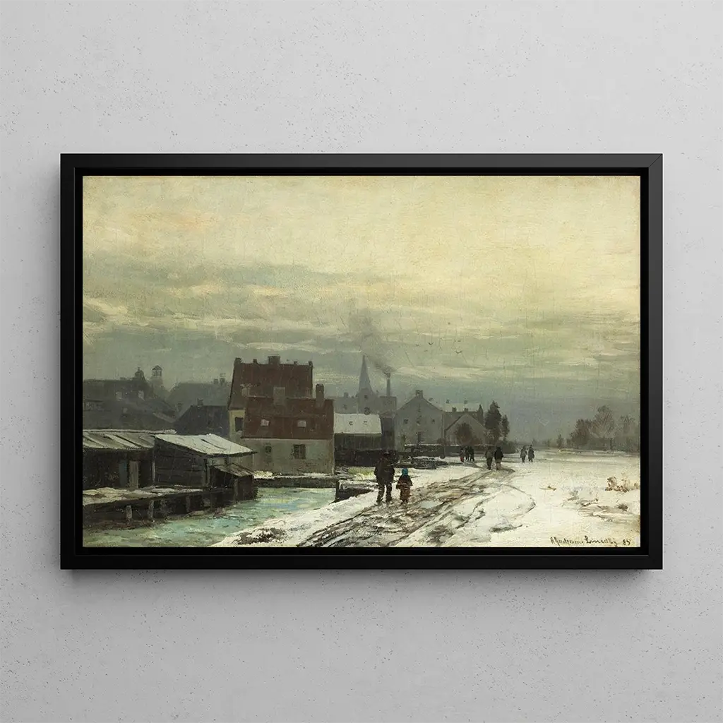 Paysage d'hiver : eine Poesie der Natur In "Paysage d'hiver" entführt uns Anders Andersen-Lundby in das Herz einer magischen Winterlandschaft. Das Leinwandbild, getaucht in sanftes Licht, zeigt eine verschneite Szenerie, in der die Schneeflocken unter einem klaren Himmel glitzern. Die Bäume, mit einer feinen Schneeschicht bedeckt, erheben sich anmutig, während ein teilweise gefrorener Bach sich durch die Komposition schlängelt. Die Technik Lundbys, die Realismus und Impressionismus verbindet, schafft eine ruhige und kontemplative Atmosphäre und lädt den Betrachter ein, in diese zauberhafte Winterwelt einzutauchen. Anders Andersen-Lundby : ein Virtuose der skandinavischen Landschaft Anders Andersen-Lundby, dänischer Maler des 19. Jahrhunderts, ist berühmt für seine zarten Landschaften. Beeinflusst vom Romantizismus und Impressionismus, hat er die Schönheit der Jahreszeiten mit einer einzigartigen Sensibilität eingefangen. Sein Werk spiegelt eine tiefe Bewunderung für die Natur wider, die er mit großer Liebe zum Detail darstellt. "Paysage d'hiver" veranschaulicht perfekt sein Talent, die Atmosphäre eines flüchtigen Moments einzufangen, und ehrt gleichzeitig die skandinavische Schönheit. Seine Fähigkeit, mit Licht und Farben zu spielen, machte ihn zu einem respektierten und geschätzten Künstler in der Kunstwelt. Eine dekorative Anschaffung mit vielfältigen Vorzügen Der kunstdruck von "Paysage d'hiver" ist eine ideale Wahl, um Ihr Zuhause zu verschönern. Ob im Wohnzimmer, Büro oder Schlafzimmer, dieses Bild bringt Frische und Ruhe in den Raum. Seine Palette sanfter Farben und seine beruhigenden Motive fügen sich harmonisch in verschiedene Einrichtungsstile ein, vom traditionellen bis zum modernen. Die Qualität des kunstdrucks garantiert eine außergewöhnliche Treue zum Originalwerk, sodass Sie die Schönheit Lundbys täglich genießen können. Durch das Hinzufügen dieses Werks zu Ihrer Sammlung schaffen Sie einen einladenden und inspirierenden Raum und feiern gleichzeitig die skandinavische Kunst.