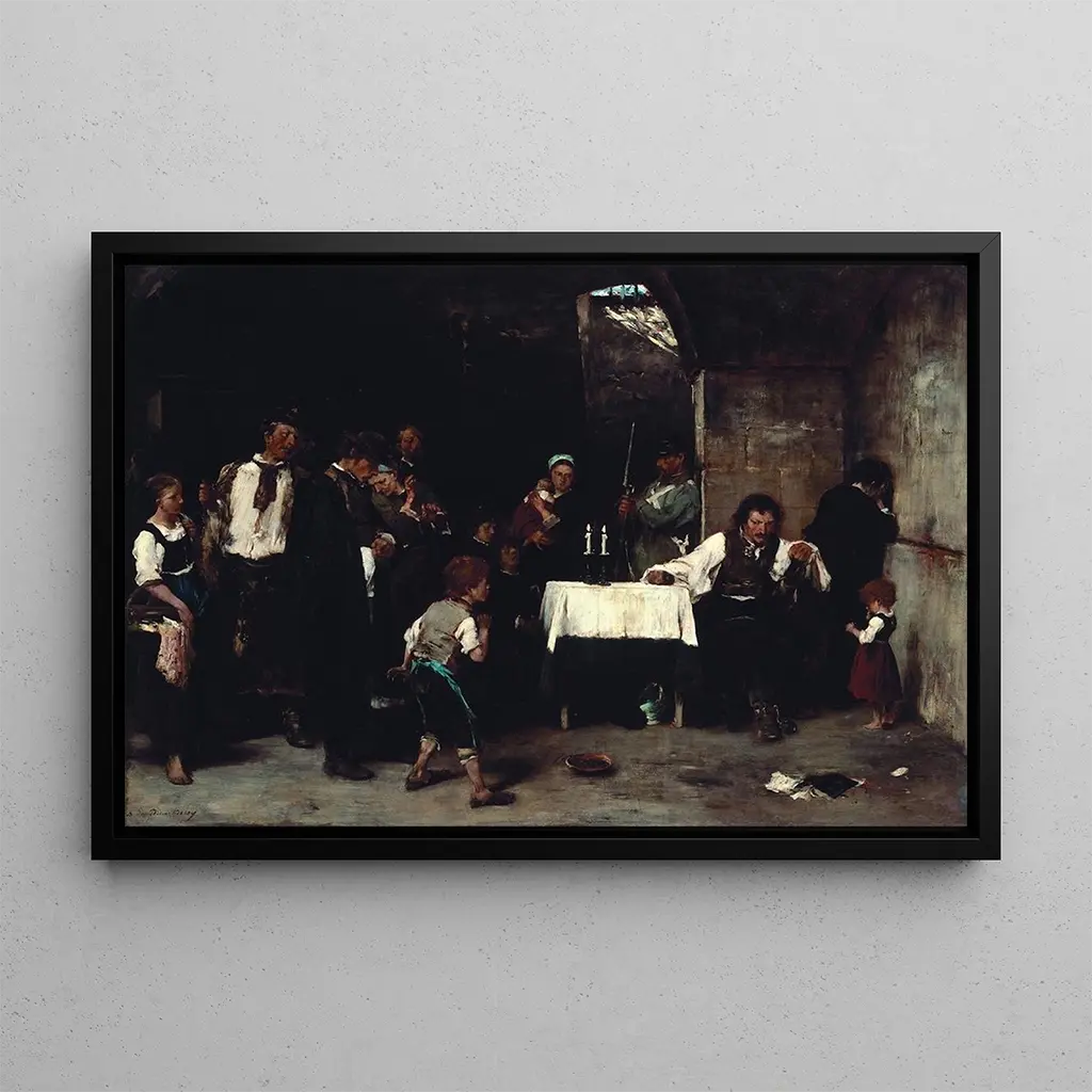 Zellengemacht I: ein Schrei der Verzweiflung und des Leidens In "Zellengemacht I" fängt Mihály Munkácsy das Wesen menschlicher Not durch eine eindrucksvolle Komposition ein. Die dunklen, erdigen Farben dominieren die Leinwand und erzeugen eine schwere, bedrückende Atmosphäre. Das Licht, subtil eingesetzt, beleuchtet das Gesicht des Protagonisten und betont seinen Ausdruck der Verzweiflung. Munkácsys Technik, die Realismus und rohe Emotion verbindet, ermöglicht es dem Betrachter, die Tiefe des Leidens zu spüren. Jedes Detail, von den Schatten bis zu den Gesichtszügen, trägt dazu bei, eine bewegende Stimmung zu schaffen, die zum Nachdenken über die menschliche Bedingung einlädt. Mihály Munkácsy: ein Meister des emotionalen Realismus Mihály Munkácsy, ungarischer Maler des 19. Jahrhunderts, ist bekannt für seine Fähigkeit, Momente großer emotionaler Intensität einzufangen. Beeinflusst von Realismus und Romantik, verstand er es, eine makellose Technik mit psychologischer Tiefe zu verbinden. Seine Werke, oft geprägt von sozialen und historischen Themen, spiegeln eine Epoche wider, in der Kunst zu einem Mittel wurde, menschliche Kämpfe auszudrücken. Munkácsy hinterließ ein nachhaltiges Erbe, insbesondere durch ikonische Gemälde, die weiterhin bewegen und inspirieren. "Zellengemacht I" reiht sich in diese Linie ein und zeugt von seinem Engagement für eine authentische Darstellung menschlicher Emotionen. Eine dekorative Anschaffung mit vielfältigen Vorzügen Der kunstdruck von "Zellengemacht I" ist ein Meisterstück, das Ihre Inneneinrichtung bereichern wird. Ob im Wohnzimmer, im Büro oder im Schlafzimmer, dieses Bild zieht den Blick auf sich und regt zum Nachdenken an. Die Qualität des Kunstdrucks garantiert eine bemerkenswerte Treue zu den Details des Originalwerks, sodass die emotionale Kraft der Malerei vollständig spürbar wird. Mit seinem einzigartigen ästhetischen Reiz wird diese Leinwand nicht nur zu einem dekorativen Element, sondern auch zu einer täglichen Inspirationsquelle, die Ihrem Wohnraum einen Hauch von Kunst und Tiefe verleiht.