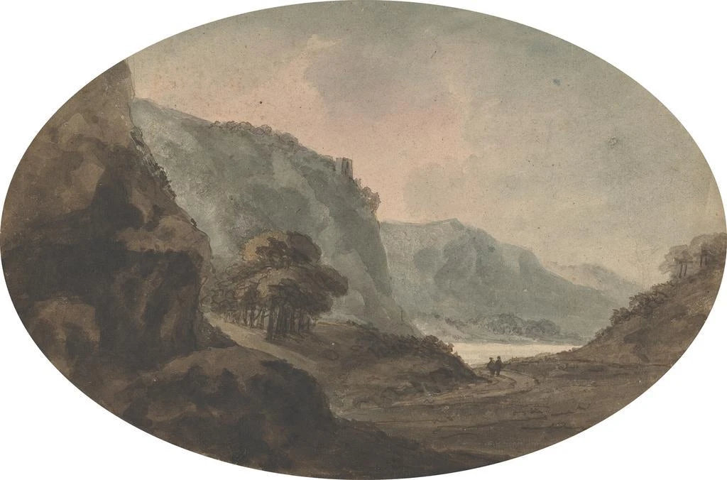 Zwei Männer, die in einer Landschaft spazieren gehen - William Gilpin