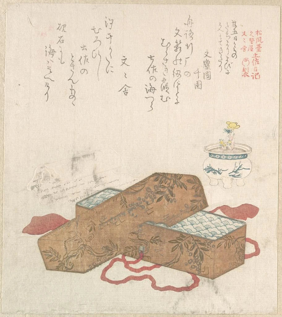 Briefkasten mit Brief und Blumenkübel - Kubo Shunman