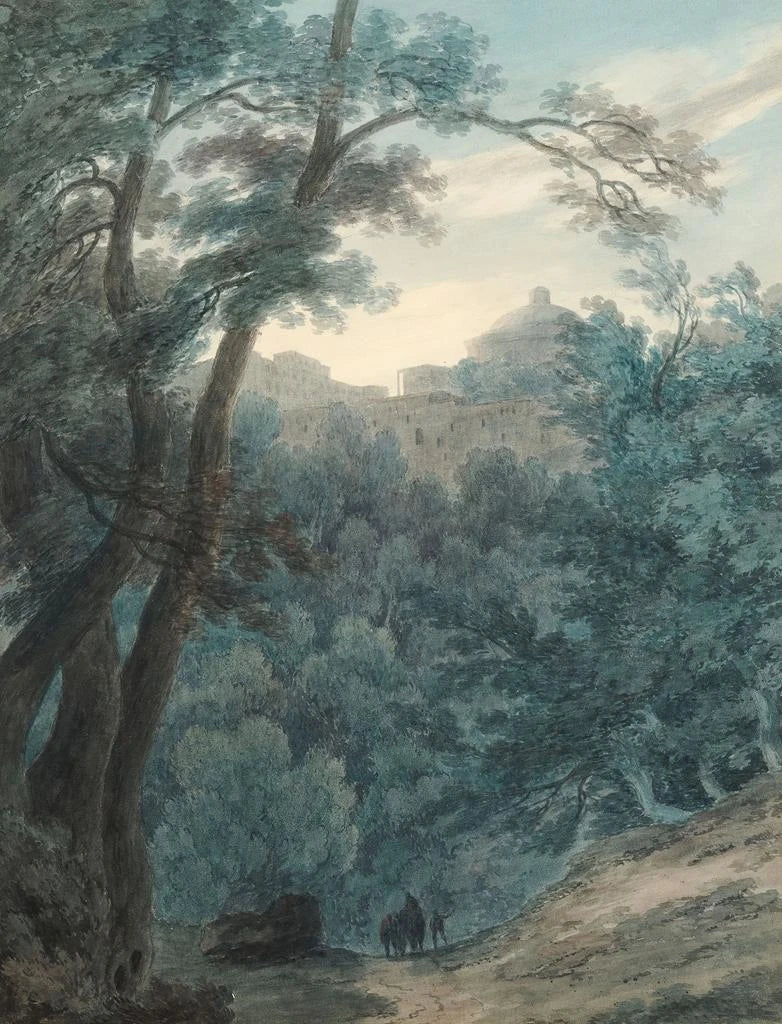 Bewaldete Landschaft und Kloster von Ariccia - John Robert Cozens