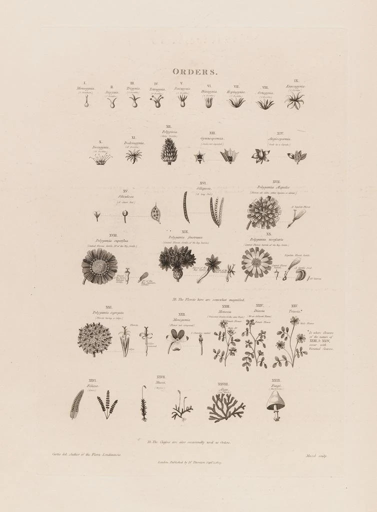 Entdecken Sie die faszinierende Welt der Ordres von Robert John Thornton. Dieses exquisite Werk vereint wissenschaftliche Präzision mit künstlerischer Eleganz und bietet einen einzigartigen Einblick in die botanische Vielfalt.
