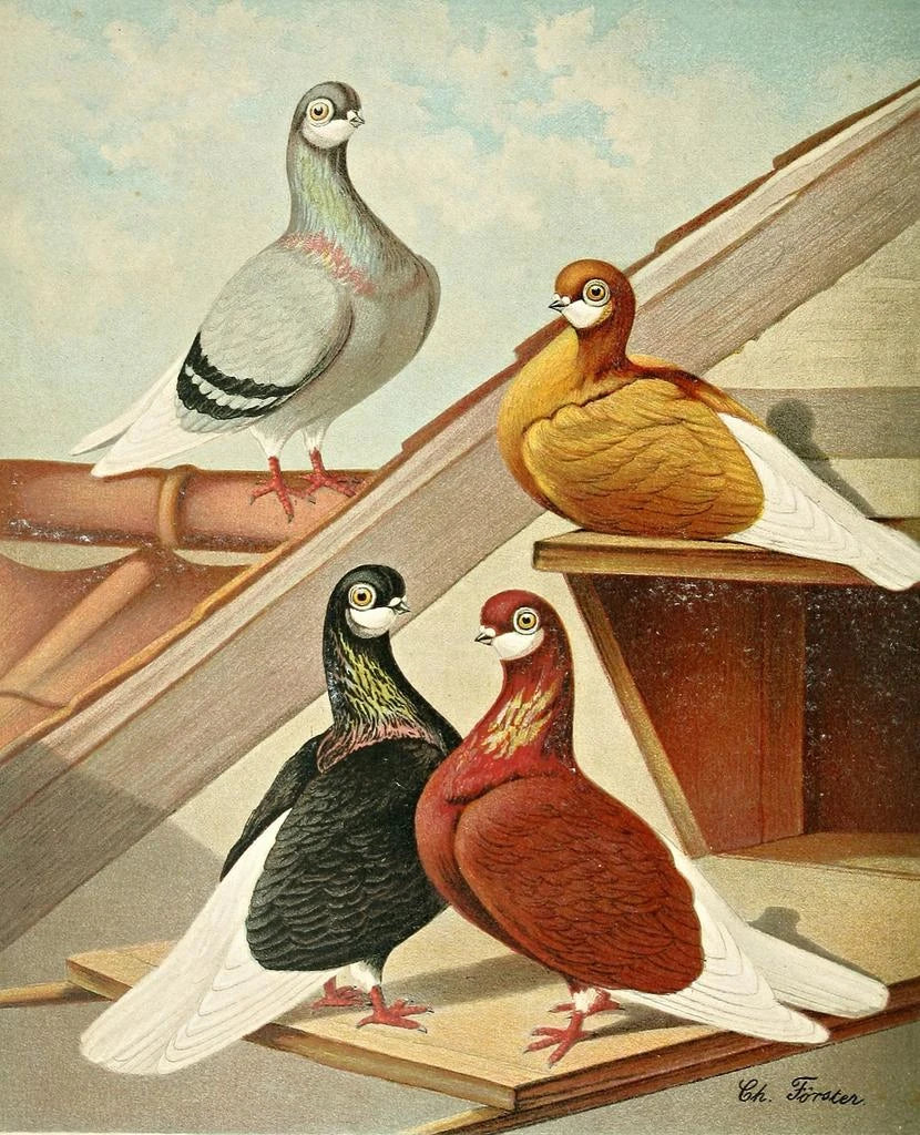 Englische Bart-Tumblers - Gustav Prütz Source: Tumblers barbus anglais - Gustav Prütz