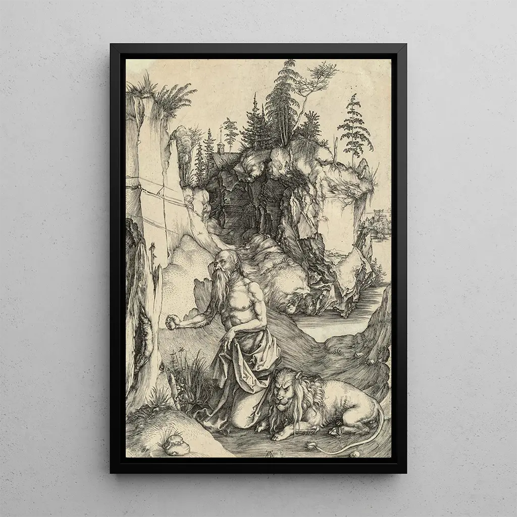 In diesem ikonischen Werk taucht uns Albrecht Dürer in die spirituelle Welt des heiligen Jerome ein, eines Mannes auf der Suche nach Erlösung. Die Komposition, reich an Details, zeigt einen meditierenden Jerome, umgeben von symbolischen Elementen wie dem Löwen und den Büchern. Die erdigen Farben und zarten Nuancen schaffen eine Atmosphäre der Gelassenheit und Kontemplation. Die Technik des Holzschnitts, meisterhaft von Dürer beherrscht, ermöglicht es, jede Textur mit beeindruckender Präzision wiederzugeben und den Betrachter in diese Szene der Andacht einzutauchen.
