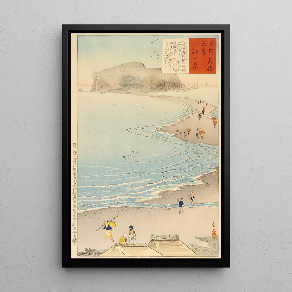 L'île Enoshima : ein bezauberndes Landschaftsbild bei Dämmerung Das Werk "L'île Enoshima" von Kobayashi Kiyochika entführt uns in eine Welt, in der natürliche Schönheit mit einer mystischen Atmosphäre verschmilzt. Das Leinwandbild, reich an leuchtenden Farben und zarten Nuancen, fängt das Licht der Dämmerung ein, das sich auf den ruhigen Gewässern spiegelt. Die detaillierten Wellen und Wolken verleihen der Szene eine fast poetische Dimension. Die Technik des ukiyo-e, charakteristisch für die japanische Kunst, ermöglicht es dem Künstler, mit Schatten und Licht zu spielen und so eine ruhige und kontemplative Stimmung zu schaffen. Dieses Bild lädt zum Träumen ein, zur Flucht in eine Welt, in der Natur und Mensch harmonisch koexistieren. Kobayashi Kiyochika : ein Meister des modernen ukiyo-e Kobayashi Kiyochika, aktiv im späten 19. Jahrhundert, zählt zu den einflussreichsten Künstlern des ukiyo-e, eines Genres japanischer kunstdrucke. Ausgebildet in einem Übergangszeitraum zwischen Tradition und Moderne, verstand er es, westliche Elemente zu integrieren, während er das Wesen der japanischen kunst bewahrte. Seine Werke, oft inspiriert von Landschaften und Szenen des Alltags, spiegeln eine einzigartige Sensibilität für Licht und Farbe wider. Kiyochika spielte eine entscheidende Rolle bei der Entwicklung des ukiyo-e und machte seine Kreationen zu wertvollen Zeugnissen einer Zeit im Wandel, in der Industrialisierung und Modernisierung begannen, die japanische Kulturlandschaft neu zu gestalten. Eine dekorative Anschaffung mit vielfältigen Vorteilen Die Wahl einer kunstdruck-Reproduktion von "L'île Enoshima" ist eine kluge Entscheidung, um Ihr Zuhause zu verschönern. Ob im Wohnzimmer, im Büro oder im Schlafzimmer, dieses Bild verleiht Eleganz und Ruhe. Die Druckqualität garantiert eine bemerkenswerte Treue zu den Details des Originalwerks, sodass Sie die Schönheit der Szene voll genießen können. Die ästhetische Anziehungskraft dieses Leinwandbildes liegt in seiner Fähigkeit, eine beruhigende Atmosphäre zu schaffen, gleichzeitig aber auch ein faszinierendes Gesprächsthema zu sein. Durch die Integration dieser Reproduktion in Ihre Dekoration bringen Sie ein Stück japanische traditionelle Kunst in Ihren Alltag.