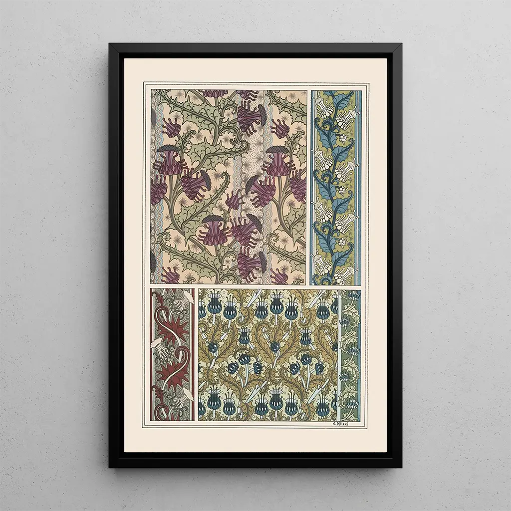 Die kunstdruck Chardon 2 von Maurice Pillard Verneuil ist ein lebendiges Werk, das durch seine leuchtende Farbpalette und seine organischen Formen die Aufmerksamkeit auf sich zieht. Die Disteln, die mit zarter Präzision dargestellt sind, scheinen auf der Leinwand zu tanzen und schaffen eine Atmosphäre, die sowohl fröhlich als auch dynamisch ist. Die Nuancen von Violett, Grün und Gelb vermischen sich harmonisch und rufen die wilde Schönheit der Natur hervor. Die Technik des Künstlers, die Impressionismus und Jugendstil verbindet, bietet eine visuelle Tiefe, die zur Betrachtung einlädt. Jedes Detail, jede Blüte ist sorgfältig ausgearbeitet und zeugt von außergewöhnlichem Können.