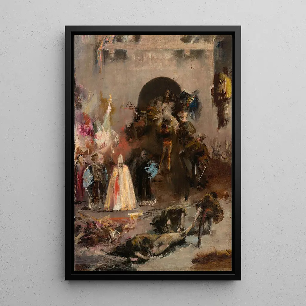 Die kunstdruck der Szene der spanischen Inquisition zu wählen, bedeutet, Ihren wohnraum mit einem werk zu bereichern, das sowohl ästhetisch ansprechend als auch bedeutungsvoll ist. Ob im wohnzimmer, büro oder schlafzimmer, dieses bild wird die aufmerksamkeit auf sich ziehen und interesse wecken. Seine druckqualität und die respektierung der originalfarben garantieren eine treue wiedergabe, die kunstliebhaber begeistern wird. Mit seiner dramatischen atmosphäre und seiner bewegenden geschichte wird diese leinwand zu einem dekorativen element, das ihrem interieur eine künstlerische tiefe verleiht und gleichzeitig eine schöne gelegenheit für gespräche über kunst und geschichte bietet.