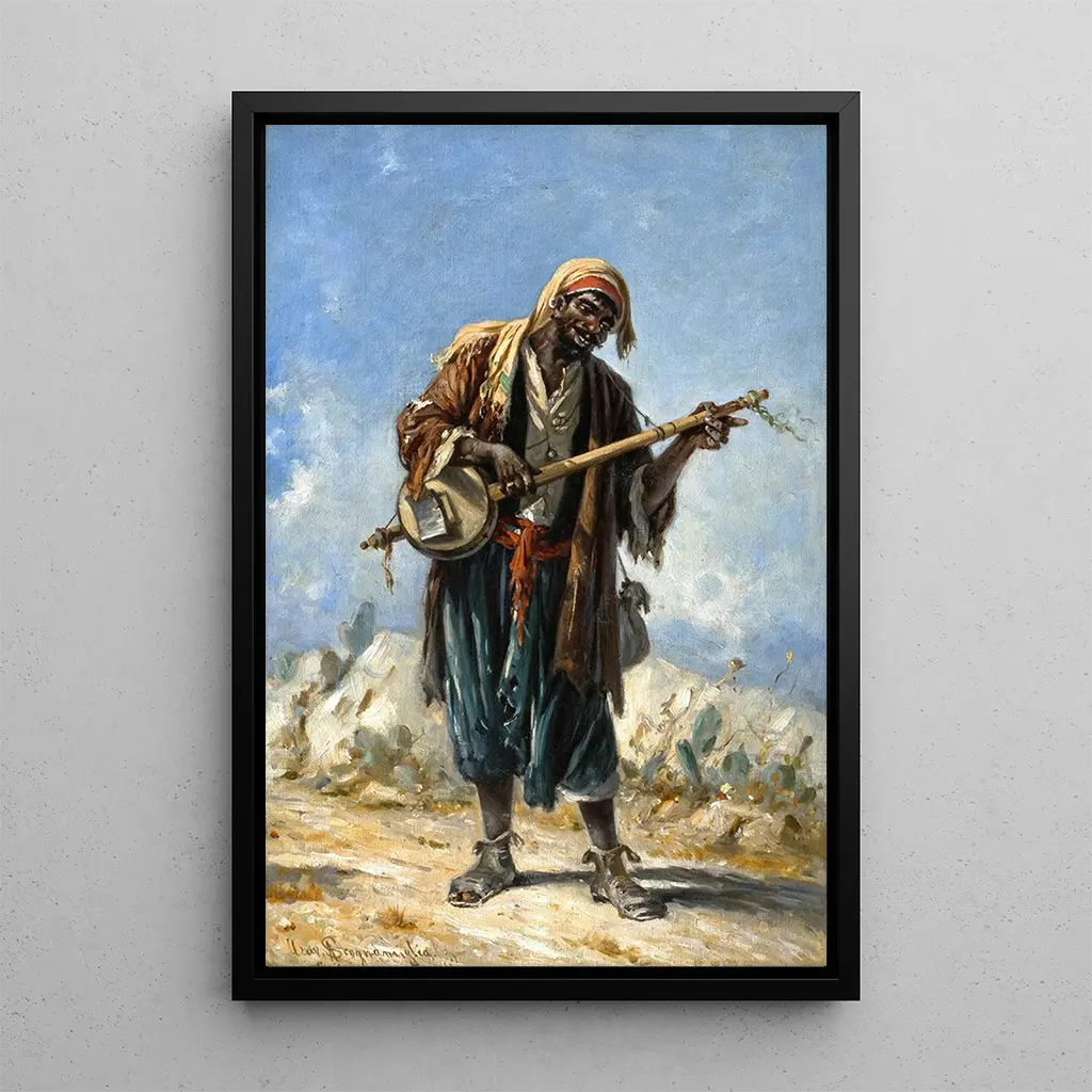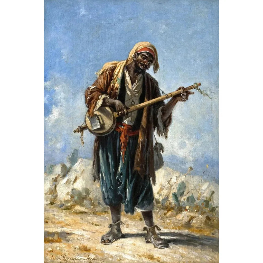 Joueur de goge près du Caire, Égypte : eine lebendige Szene des Lebens Der kunstdruck des Joueur de goge près du Caire, Égypte, taucht den Betrachter in eine lebendige und farbenfrohe Szene ein. Die leuchtenden Farben der Kleidung und die spürbare Energie des Spielers schaffen eine festliche Atmosphäre, die die musikalischen Traditionen Ägyptens widerspiegelt. Die verwendete Maltechnik hebt die Texturen der Stoffe und die Ausdrücke der Figuren hervor, wodurch die Szene fast greifbar wird. Jedes Detail, von der Bewegung des Spielers bis zur Interaktion mit seiner Umgebung, erzählt eine Geschichte von Kultur und Leidenschaft. Dieses Gemälde ist eine wahre Feier der Musik und des täglichen Lebens in Ägypten und fängt die Essenz eines flüchtigen Moments ein. Antonio Scognamiglio : ein Zeuge des ägyptischen Lebens Antonio Scognamiglio, Künstler des 19. Jahrhunderts, ist bekannt für seine lebendigen Darstellungen des Lebens in Ägypten. Seine Arbeiten sind geprägt von einer Faszination für die lokalen Bräuche und dem Wunsch, die Authentizität der beobachteten Szenen einzufangen. Beeinflusst vom orientalistischen Bewegung, konnte Scognamiglio Realismus und Romantik verbinden und bot einen einzigartigen Blick auf die ägyptische Kultur seiner Zeit. Seine Werke, oft von Nostalgie geprägt, zeugen von einem wachsenden Interesse am Orient in dieser Epoche und machen ihn zu einem bedeutenden Akteur in der Geschichte des orientalistischen Kunsts. Eine dekorative Anschaffung mit vielfältigen Vorzügen Der kunstdruck des Joueur de goge près du Caire, Égypte, ist eine dekorative Wahl, die Ihrem Interieur einen Hauch von Exotik verleiht. Ob im Wohnzimmer, Büro oder Schlafzimmer, diese Leinwand zieht den Blick auf sich und weckt Interesse. Die Druckqualität garantiert eine bemerkenswerte Treue zu den Details und Farben des Originalwerks, während sie gleichzeitig eine warme und einladende Atmosphäre schafft. Durch die Integration dieses Gemäldes in Ihre Dekoration laden Sie nicht nur ein Stück Geschichte ein, sondern auch eine Feier der ägyptischen Kultur, die Ihren Lebensraum bereichern wird.