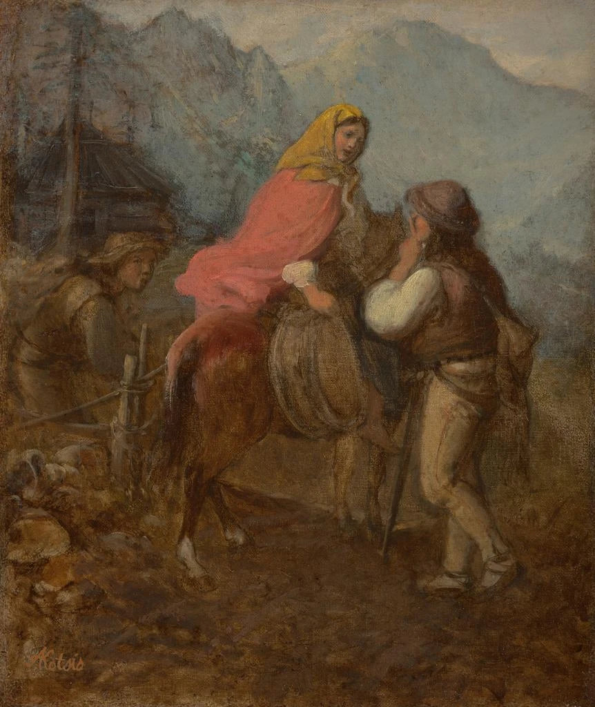 Aleksander Kotsis, peintre du XIXe siècle, est souvent considéré comme un des pionniers de la peinture paysagère en Pologne. Formé dans les académies d'art européennes, il puise son inspiration dans la nature et les traditions folkloriques. Son œuvre est marquée par un désir de capturer l'authenticité des scènes de la vie quotidienne, tout en intégrant des éléments romantiques qui exaltent la beauté des paysages. Kotsis a su s'imposer dans le monde de l'art en alliant des techniques académiques à une sensibilité moderne, influençant ainsi de nombreux artistes contemporains. Sa représentation de la femme dans un contexte traditionnel, comme dans "Une femme des Highlands à cheval", souligne son engagement à valoriser le rôle des femmes dans la société, tout en célébrant leur connexion avec la terre et la culture.