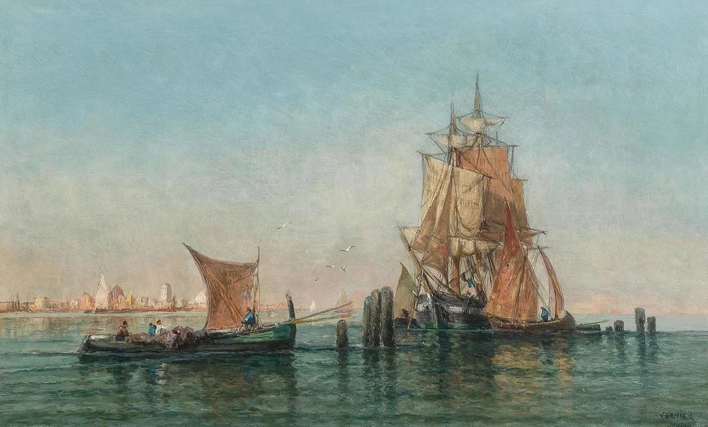 Kunstdruck | Venedig Handelsschiffe in der Lagune - Jules Vernier