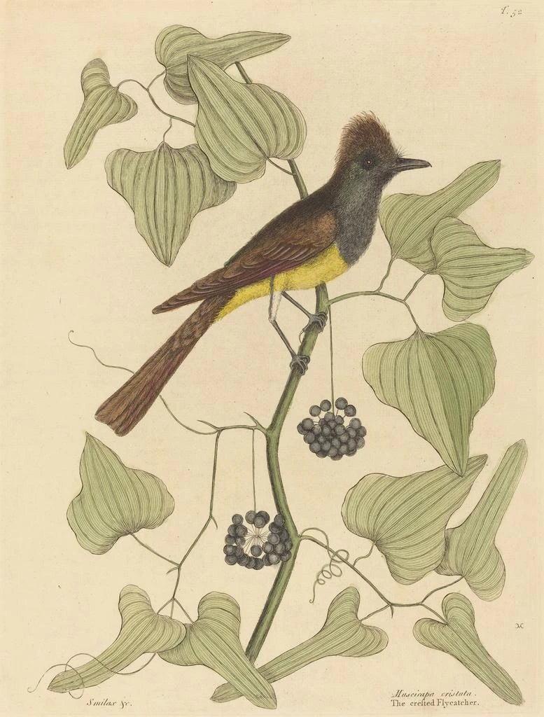 Le Moucherolle huppé Muscicapa cristata - Mark Catesby
