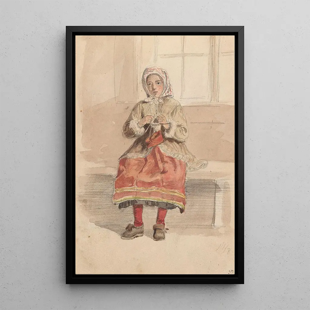 Reproduction | Jeune femme tricotant - Adolph Tidemand
