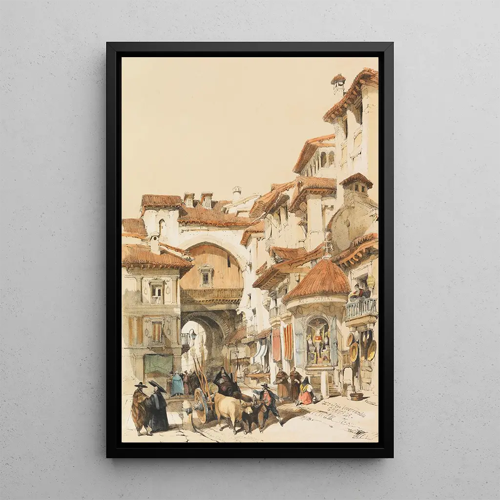 La reproduction Esquisses en Espagne de David Roberts nous transporte dans un monde vibrant de couleurs et de lumière. À travers ses coups de pinceau, l’artiste capture l’essence des paysages andalous, mêlant des teintes chaudes de terre cuite et des nuances de bleu azur. Les détails architecturaux des bâtiments historiques, ainsi que la vie quotidienne des habitants, sont dépeints avec une précision remarquable. L’atmosphère qui se dégage de cette œuvre évoque une nostalgie pour un temps révolu, tout en célébrant la beauté intemporelle de cette région. Chaque élément de la toile semble raconter une histoire, invitant le spectateur à s’immerger dans cette ambiance méditerranéenne.