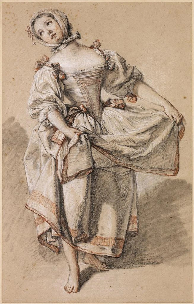 Dans cette œuvre vibrante, François Boucher capture la légèreté et la joie d'une jeune paysanne dansant sous un ciel bleu éclatant. Les couleurs pastel, douces et lumineuses, évoquent une atmosphère bucolique et festive. La composition est soigneusement équilibrée, avec des courbes gracieuses qui soulignent le mouvement de la danseuse. Les détails délicats de sa robe et de son environnement, tels que les fleurs et les arbres, ajoutent une dimension de fraîcheur et de vitalité. Cette reproduction du tableau "Jeune paysanne dansant" est une invitation à plonger dans un monde de simplicité et de bonheur.