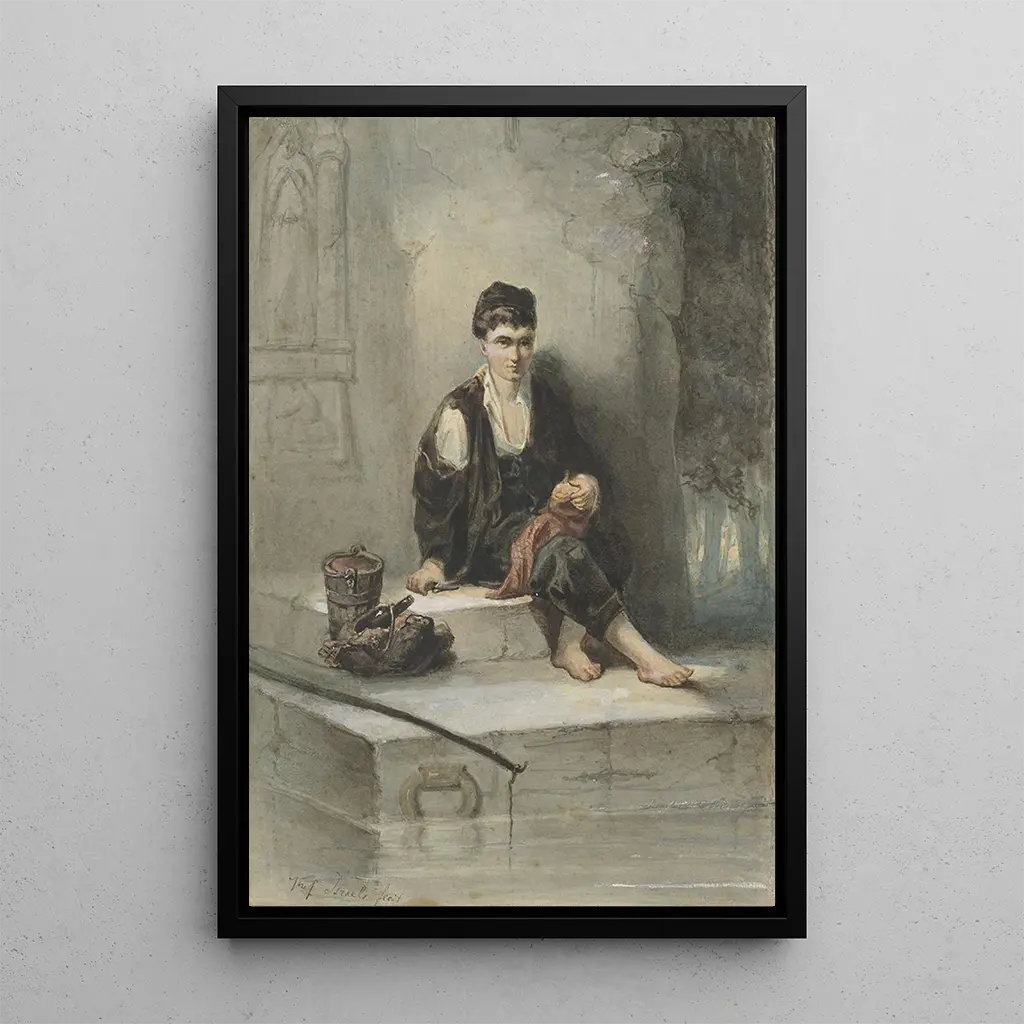 Dans 'Jeune pêcheur assis à son repas', Jozef Israëls capture un moment de tranquillité, où un jeune homme savoure un repas simple après une journée de travail. La composition est soigneusement équilibrée, avec des couleurs terreuses qui évoquent la simplicité de la vie rurale. La lumière douce met en valeur les traits du visage du pêcheur, soulignant à la fois la fatigue et la satisfaction. Cette reproduction invite à une réflexion sur la beauté des instants modestes, où chaque détail raconte une histoire de labeur et de repos.