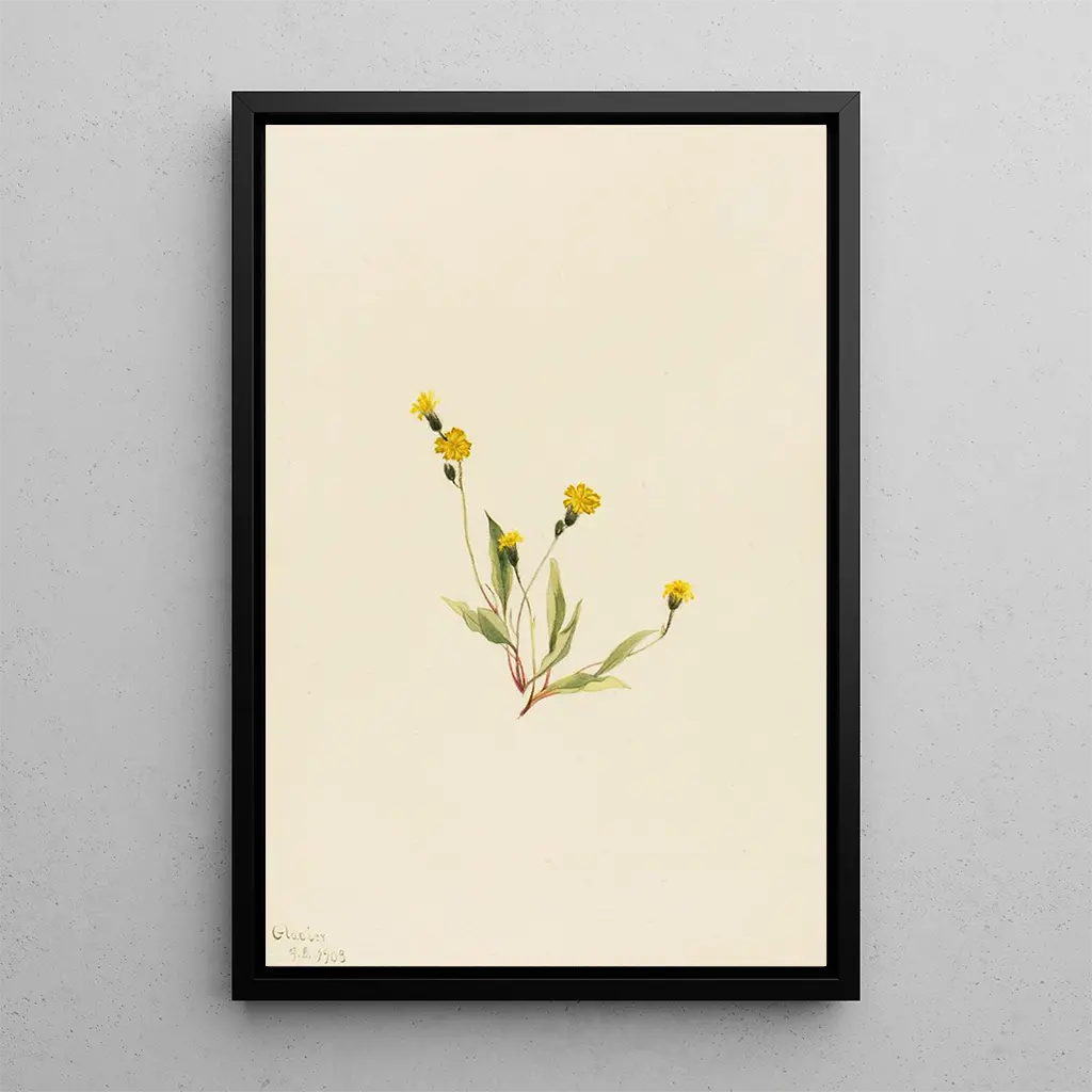 Le tableau Hieracium gracile de Mary Vaux Walcott capture la beauté éphémère d'une fleur délicate. Les nuances de vert et de jaune se mêlent harmonieusement, évoquant la fraîcheur d'un matin printanier. La technique de l’aquarelle, avec ses transparences et ses dégradés subtils, confère à l'œuvre une légèreté aérienne. Chaque pétale semble vibrer sous la lumière, créant une atmosphère paisible et contemplative. L'artiste réussit à immortaliser la fragilité de la nature, invitant le spectateur à s'arrêter et à apprécier la beauté simple mais profonde de cette plante.