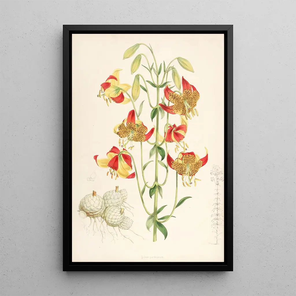 Lilium pardalinum : une ode à la beauté florale Lilium pardalinum, également connu sous le nom de lys tacheté, est une œuvre vibrante qui capture l'essence même de la nature. Avec ses pétales délicats et ses couleurs éclatantes allant du jaune au rouge, cette reproduction évoque une sensation de fraîcheur et de vitalité. La technique de l’aquarelle utilisée par l’artiste, Walter Hood Fitch, permet de créer des nuances subtiles et des dégradés harmonieux, donnant vie à chaque détail de la fleur. L’atmosphère qui se dégage de cette toile est à la fois apaisante et inspirante, invitant le spectateur à plonger dans un monde de sérénité et de contemplation. Walter Hood Fitch : un pionnier de l’illustration botanique Walter Hood Fitch, actif au XIXe siècle, est reconnu comme l'un des plus grands illustrateurs botaniques de son temps. Formé à l'école des beaux-arts, il a su allier précision scientifique et sensibilité artistique dans ses œuvres. Fitch a été influencé par le mouvement romantique, qui valorisait la nature et l'expression personnelle. Son travail a contribué à la documentation des espèces végétales, et ses illustrations ont été publiées dans de nombreux ouvrages botaniques, faisant de lui une figure emblématique de l'illustration florale. Lilium pardalinum est un exemple parfait de son habileté à capturer la beauté éphémère des plantes. Une acquisition décorative aux multiples atouts La reproduction de Lilium pardalinum est un choix idéal pour embellir votre intérieur, que ce soit dans un salon, un bureau ou une chambre. Sa qualité d'impression garantit une fidélité remarquable aux couleurs et aux détails de l'œuvre originale, apportant une touche de nature à votre décor. Ce tableau, avec son attrait esthétique indéniable, peut servir de point focal dans une pièce ou s'intégrer harmonieusement à d'autres éléments décoratifs. En optant pour cette toile, vous ajoutez non seulement une œuvre d'art à votre espace, mais aussi une invitation à la contemplation et à l'émerveillement face à la beauté du monde naturel.
