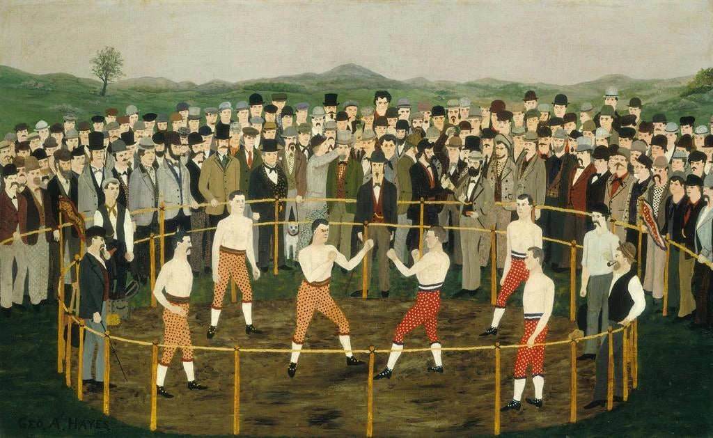 "À mains nues" de George A. Hayes est une œuvre puissante qui capte l'essence de la lutte humaine. La toile, riche en textures et en nuances, dépeint des figures en mouvement, exprimant à la fois la force et la vulnérabilité. Les couleurs terreuses et les ombres accentuées créent une atmosphère dramatique, plongeant le spectateur dans un récit visuel intense. Hayes utilise une technique de peinture à l'huile qui donne vie à ses personnages, leur conférant une profondeur émotionnelle qui résonne avec quiconque observe l'œuvre.