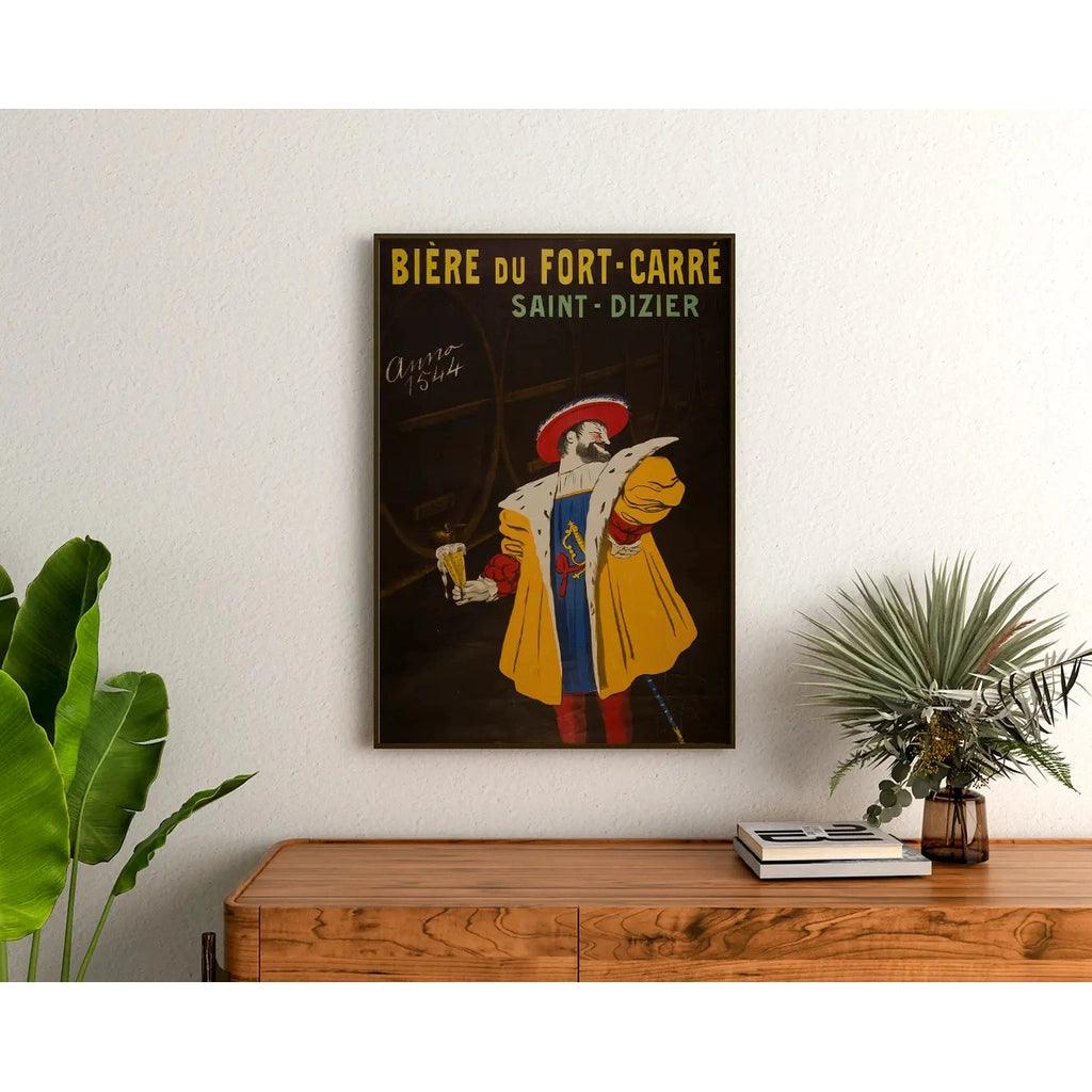 Découvrez cette superbe reproduction de l'affiche publicitaire "Bière du Fort-Carré" créée en 1912 par Leonetto Cappiello, maître de l'affiche moderne. Avec son style audacieux et son sens de l'humour, cette œuvre met en scène un personnage charismatique en habits royaux, levant fièrement une chope de bière mousseuse, symbole de convivialité et de tradition brassicole.