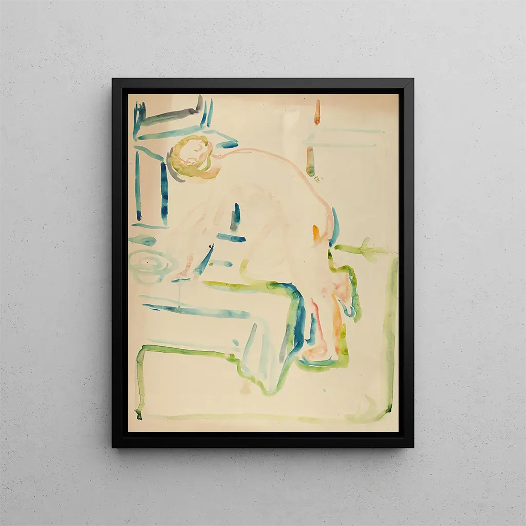 Edvard Munch, né en Norvège en 1863, est un artiste dont l'œuvre a profondément marqué le paysage artistique du XXe siècle. Sa vie, marquée par des tragédies personnelles et des luttes intérieures, est le moteur de sa créativité. Munch s'intéresse à des thèmes tels que l'amour, la mort, et la mélancolie, des sujets qui traversent son œuvre et lui confèrent une dimension universelle. "Agir avec les genoux sur le lit" s'inscrit dans cette quête de compréhension des émotions humaines. L'influence de Munch est indéniable, ayant inspiré des générations d'artistes, notamment dans le mouvement expressionn
