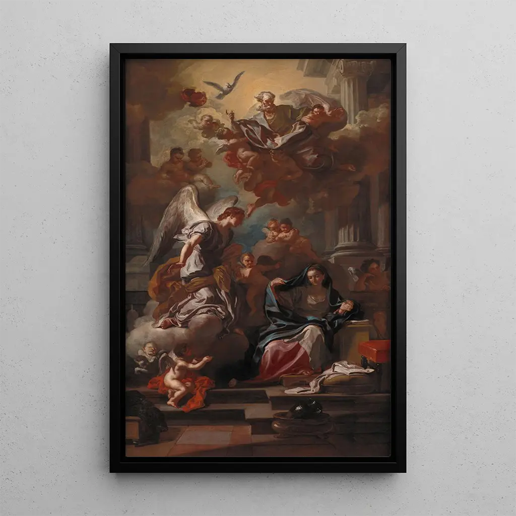La reproduction de L'Annonciation de Francesco Solimena capture un instant de grâce où le divin rencontre l'humain. Les couleurs délicates et les détails minutieux créent une atmosphère de sérénité et de mystère. La scène, où l'ange Gabriel annonce à la Vierge Marie qu'elle concevra le Christ, est rendue avec une intensité émotionnelle remarquable. Les drapés des vêtements et les expressions des visages témoignent du talent de Solimena pour exprimer des sentiments profonds, transformant ce moment sacré en une expérience visuelle captivante.
