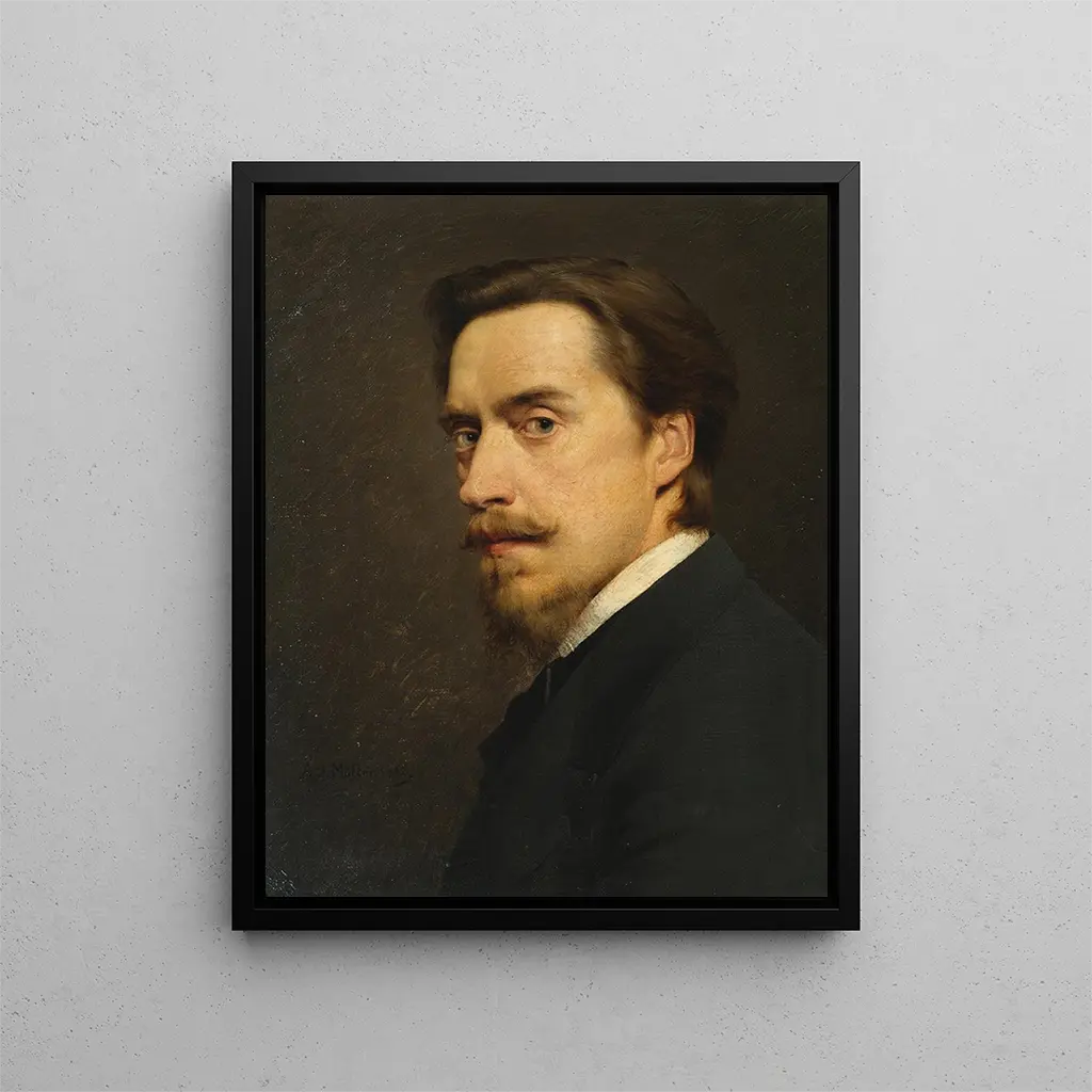 Reproduction Autoportrait - Anton Müller – Introduction captivante L'« Autoportrait » d'Anton Müller est une œuvre qui transcende le simple exercice de représentation personnelle pour offrir une réflexion profonde sur l'identité et la perception de soi. En s'immergeant dans cette pièce, le spectateur est invité à explorer les nuances de l'âme humaine, ainsi que les complexités de l'artiste lui-même. La puissance de ce tableau réside non seulement dans sa technique, mais aussi dans son aptitude à provoquer une introspection chez celui qui l'observe. Chaque coup de pinceau semble chargé d'émotions, créant une connexion intime entre l'artiste et son public. Cette œuvre, emblématique de son époque, témoigne d'une quête incessante de vérité et d'authenticité. Style et singularité de l’œuvre Le style de Müller se distingue par une approche audacieuse et innovante. Les couleurs vives et les contrastes saisissants qui caractérisent son « Autoportrait » témoignent d'une maîtrise technique indéniable. Le choix des teintes et la manière dont elles s'entrelacent révèlent une sensibilité artistique qui va au-delà de la simple représentation. Les ombres et les lumières sont habilement manipulées pour donner vie à l'image, conférant à l'œuvre une dimension presque sculpturale. La posture de l'artiste, à la fois assurée et vulnérable, évoque une dualité qui interpelle le spectateur. Ce jeu entre force et fragilité est l'une des signatures de Müller, qui parvient à capturer l'essence même de l'être humain à travers son art. L’artiste et son influence Anton Müller, figure emblématique du mouvement artistique de son temps, a su s'imposer par son originalité et sa vision unique. Influencé par les grands maîtres de la peinture, il a néanmoins su forger son propre style, intégrant des éléments de la modernité tout en respectant les traditions. Son œuvre est le reflet d'une époque en pleine mutation, où les artistes cherchaient à redéfinir les codes de l'art. Müller a non seulement laissé une empreinte indélébile dans le monde de l'art, mais il a également inspiré de nombreux artistes contemporains, qui voient en lui un modèle de courage et d'innovation. Sa capacité à capturer des émotions universelles à travers des portraits intimes continue d'influencer les générations futures, faisant de lui une figure incontournable de l'histoire