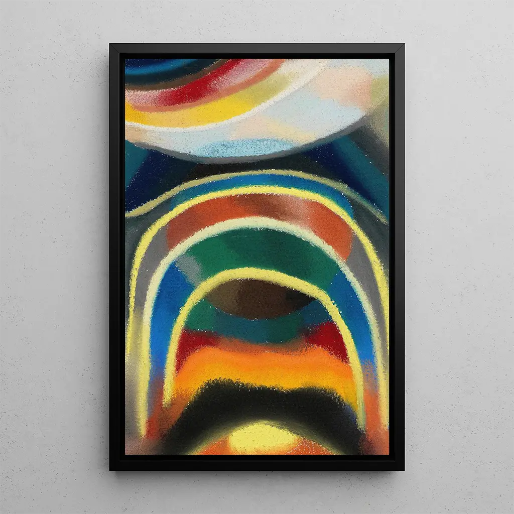 Les "Cercles de lumière Arc-en-ciel cosmique" d'Otto Freundlich sont une véritable célébration de la couleur et de la forme. Cette œuvre, réalisée dans un style abstrait, évoque une sensation de mouvement et de dynamisme grâce à ses cercles concentriques qui semblent flotter dans l'espace. Les teintes éclatantes, allant des rouges profonds aux bleus apaisants, créent une atmosphère à la fois joyeuse et méditative. La technique de Freundlich, qui mêle peinture et sculpture, donne vie à cette toile, transformant l'espace en un univers où la lumière et la couleur s'entrelacent harmonieusement.