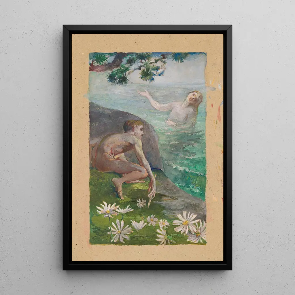 Chant de la sirène : une mélodie visuelle captivante Le tableau "Chant de la sirène" de John La Farge évoque une atmosphère envoûtante où la mer et la mythologie se rencontrent. Les couleurs vives et les nuances délicates de bleu et de vert créent une ambiance aquatique, tandis que la sirène, figure centrale, semble chanter une mélodie douce et mélancolique. La technique de La Farge, qui mêle peinture à l'huile et influences du vitrail, donne à l'œuvre une luminosité unique. Chaque coup de pinceau semble vibrer, capturant l'essence d'un moment suspendu entre rêve et réalité. John La Farge : un pionnier de l'art américain John La Farge, actif au XIXe siècle, est reconnu pour son rôle dans le mouvement artistique américain, mêlant influences européennes et traditions locales. Formé à Paris, il a été inspiré par les impressionnistes et les préraphaélites, ce qui se reflète dans son utilisation audacieuse de la couleur et de la lumière. La Farge a également été un innovateur dans l'art du vitrail, créant des œuvres qui transcendent les simples représentations. Son approche unique et sa capacité à fusionner différents médiums ont fait de lui une figure essentielle de son époque, marquant l'histoire de l'art américain. Une acquisition décorative aux multiples atouts La reproduction du "Chant de la sirène" est une pièce décorative qui saura enrichir n'importe quel espace, que ce soit un salon, un bureau ou une chambre. Sa qualité d'impression fidèle et son attrait esthétique en font un choix idéal pour ceux qui cherchent à ajouter une touche d'élégance et de mystère à leur intérieur. Ce tableau, avec ses nuances marines et son sujet captivant, invite à la contemplation et à l'évasion, transformant votre espace en un lieu de rêve et de sérénité.
