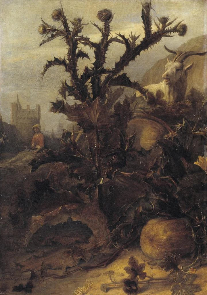 Reproduction | Chardon, citrouille et une chèvre - Lambert Doomer